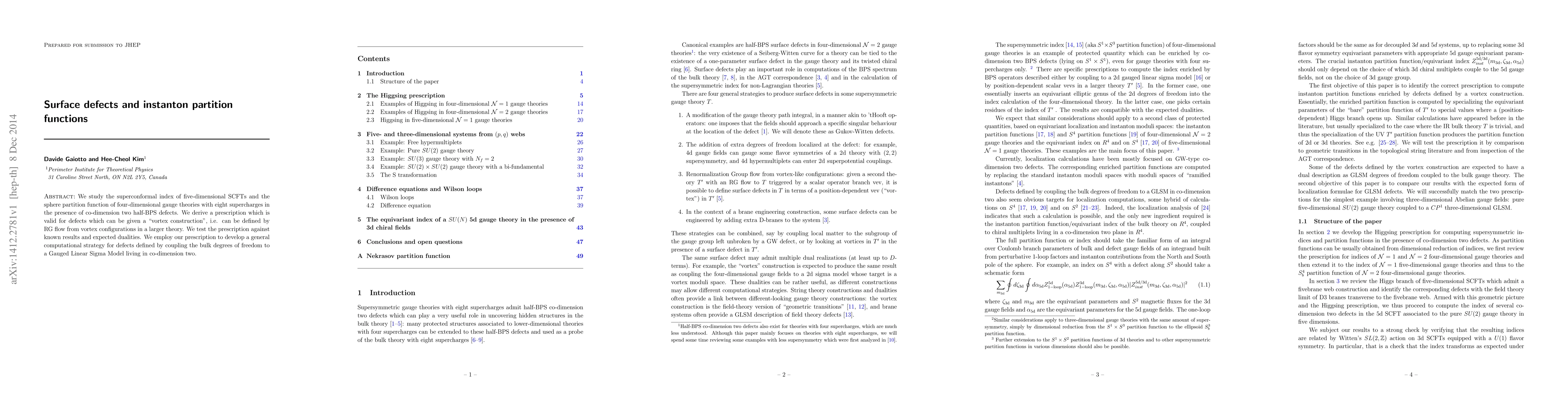 This paper investigates the superconformal index of five-dimensional SCFTs and the sphere partition function of four-dimensional gauge theories, focusing on the impact of co-dimension two half-BPS defects. It proposes a new prescription for calculating these functions, validated through known results and dualities, and applies this method to compute the effects of coupling bulk degrees to a Gauged Linear Sigma Model.