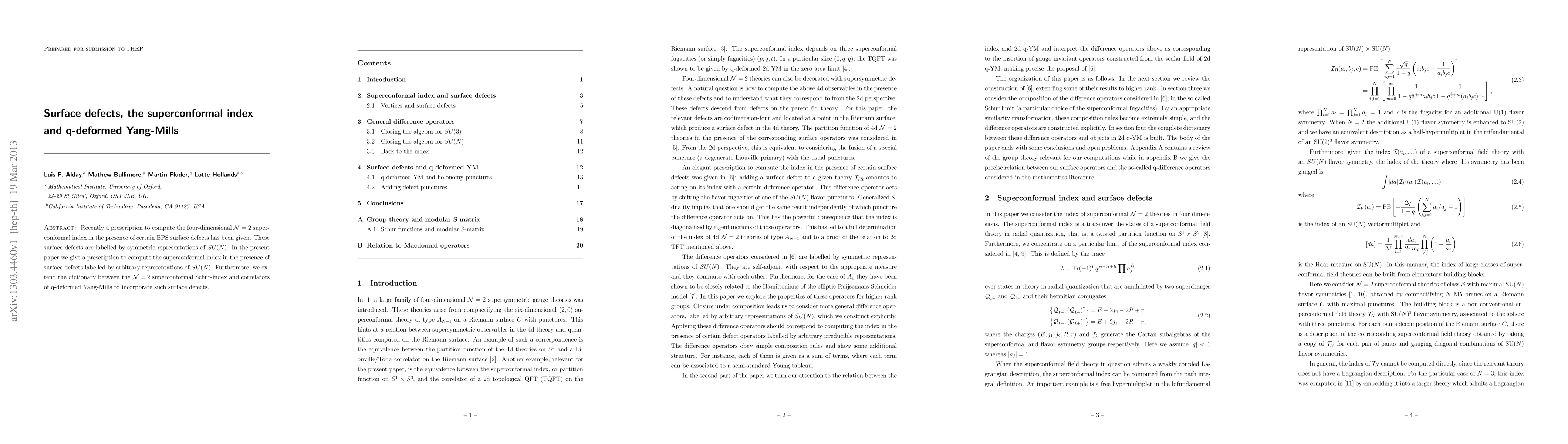 This paper provides a method to calculate the four-dimensional N=2 superconformal index in the presence of surface defects labeled by arbitrary SU(N) representations and extends the relationship between the Schur-index and correlators of q-deformed Yang-Mills to include these defects.