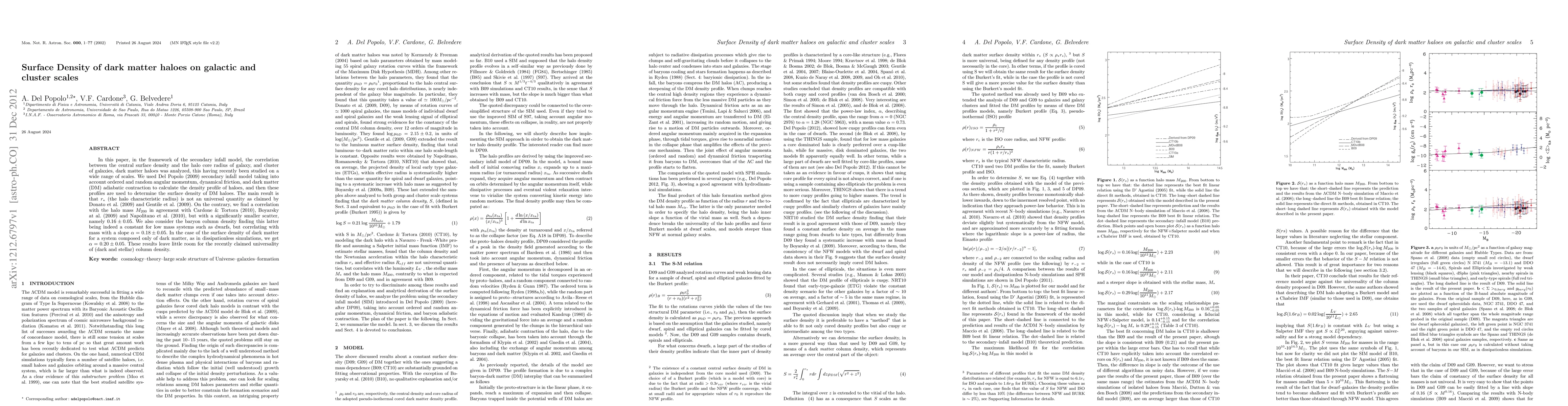 This paper analyzes the correlation between the central surface density and halo core radius of dark matter haloes in galaxies and clusters using the Del Popolo secondary infall model. It finds that the characteristic radius $r_\ast$ correlates with halo mass $M_{200}$ rather than being universal, contradicting previous claims, and supports a smaller scatter in the correlation.