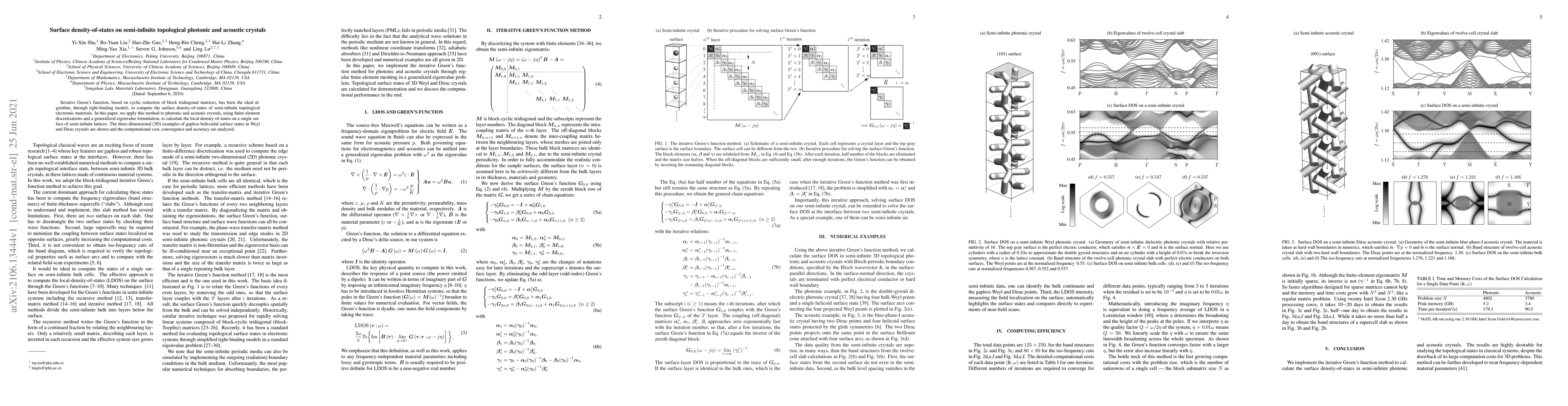 This paper applies an iterative Green's function method to compute the surface density-of-states in semi-infinite topological photonic and acoustic crystals, revealing gapless helicoidal surface states in Weyl and Dirac crystals. The study analyzes computational cost, convergence, and accuracy using finite-element discretizations.