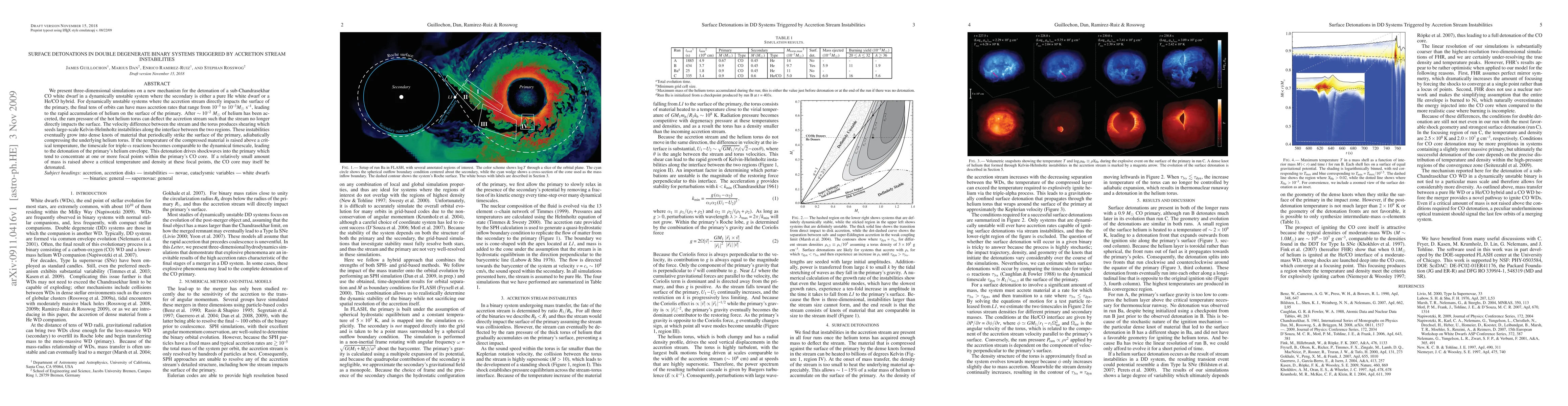 We present three-dimensional simulations on a new mechanism for the detonation of a sub-Chandrasekhar CO white dwarf in a dynamically unstable system where the secondary is either a pure He white dwarf or a He/CO hybrid. For dynamically unstable systems where the accretion stream directly impacts the surface of the primary, the final tens of orbits can have mass accretion rates that range from $10^{-5}$ to $10^{-3} M_{\odot}$ s$^{-1}$, leading to the rapid accumulation of helium on the surface of the primary. After $\sim 10^{-2}$ $M_{\odot}$ of helium has been accreted, the ram pressure of the hot helium torus can deflect the accretion stream such that the stream no longer directly impacts the surface. The velocity difference between the stream and the torus produces shearing which seeds large-scale Kelvin-Helmholtz instabilities along the interface between the two regions. These instabilities eventually grow into dense knots of material that periodically strike the surface of the primary, adiabatically compressing the underlying helium torus. If the temperature of the compressed material is raised above a critical temperature, the timescale for triple-$\alpha$ reactions becomes comparable to the dynamical timescale, leading to the detonation of the primary's helium envelope. This detonation drives shockwaves into the primary which tend to concentrate at one or more focal points within the primary's CO core. If a relatively small amount of mass is raised above a critical temperature and density at these focal points, the CO core may itself be detonated.