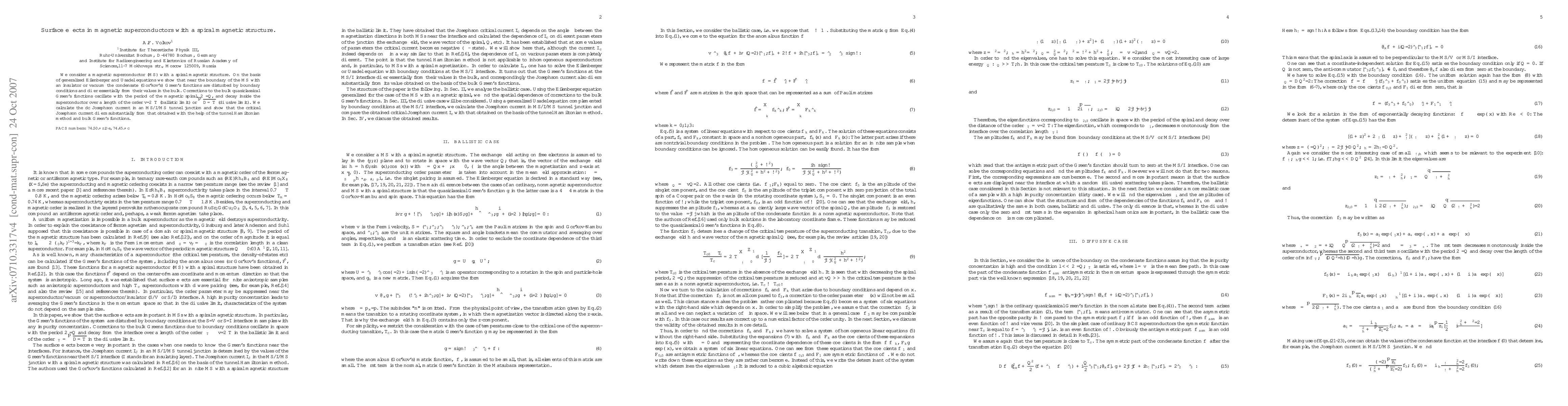 Researchers studied how a magnetic superconductor's spiral structure affects its behavior near boundaries, finding that it alters the flow of electric current in tunnel junctions.