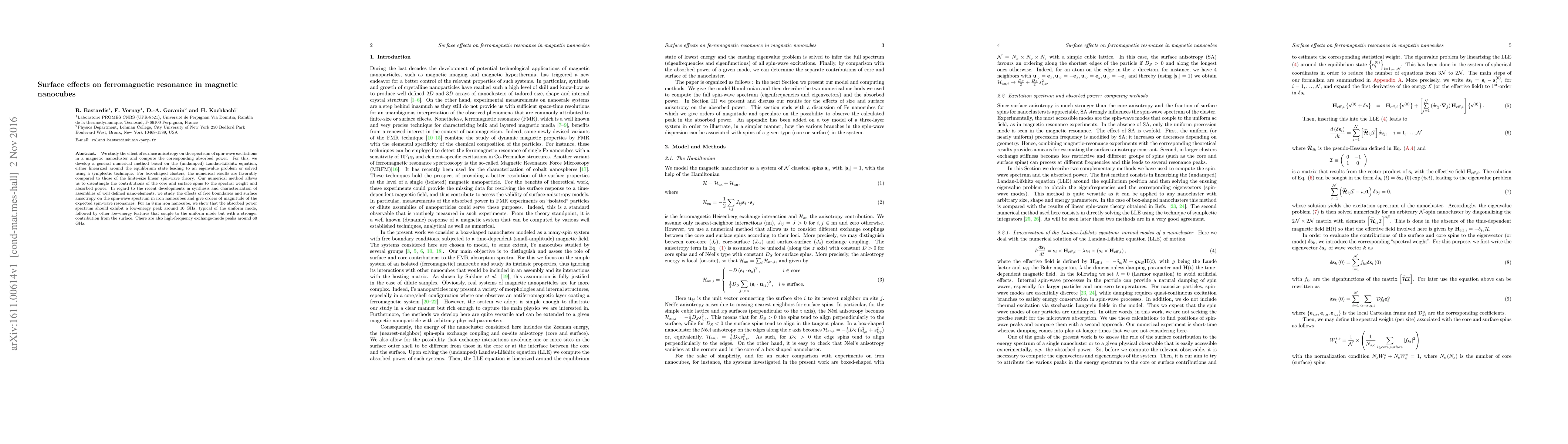 We study the effect of surface anisotropy on the spectrum of spin-wave excitations in a magnetic nanocluster and compute the corresponding absorbed power. For this, we develop a general numerical method based on the (undamped) Landau-Lifshitz equation, either linearized around the equilibrium state leading to an eigenvalue problem or solved using a symplectic technique. For box-shaped clusters, the numerical results are favorably compared to those of the finite-size linear spin-wave theory. Our numerical method allows us to disentangle the contributions of the core and surface spins to the spectral weight and absorbed power. In regard to the recent developments in synthesis and characterization of assemblies of well defined nano-elements, we study the effects of free boundaries and surface anisotropy on the spin-wave spectrum in iron nanocubes and give orders of magnitude of the expected spin-wave resonances. For an 8 nm iron nanocube, we show that the absorbed power spectrum should exhibit a low-energy peak around 10 GHz, typical of the uniform mode, followed by other low-energy features that couple to the uniform mode but with a stronger contribution from the surface. There are also high-frequency exchange-mode peaks around 60 GHz.