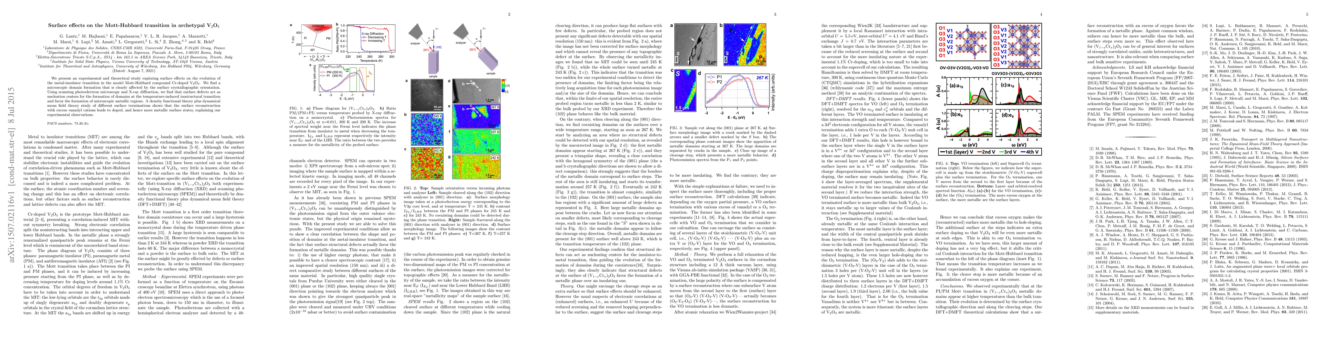 The study examines surface effects on the metal-insulator transition in Cr-doped V2O3, revealing that surface crystallographic orientation influences microscopic domain formation. Experimental evidence from scanning photoelectron microscopy and X-ray diffraction, combined with density functional theory and dynamical mean field theory, shows that surface defects and reconstructions favor metallic regions.