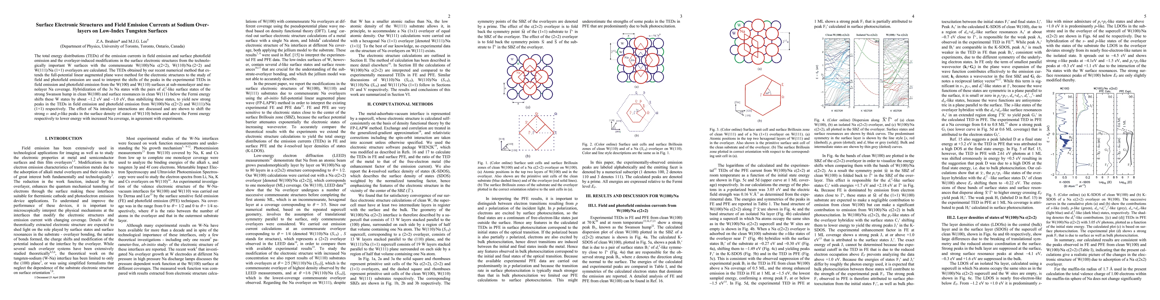 The total energy distributions (TEDs) of the emission currents in field emission and surface photofield emission and the overlayer-induced modifications in the surface electronic structures from the technologically important W surfaces with the commensurate W(100)/Na c(2x2), W(110)/Na (2x2) and W(111)/Na (1x1) overlayers are calculated. The TEDs obtained by our recent numerical method that extends the full-potential linear augmented plane wave method for the electronic structures to the study of field and photofield emission are used to interpret the shifts of the peaks in the experimental TEDs in field emission and photofield emission from the W(100) and W(110) surfaces at sub-monolayer and monolayer Na coverage. Hybridization of the 3s Na states with the pairs of dz2-like surface states of the strong Swanson hump in clean W(100) and surface resonances in clean W(111) below the Fermi energy shifts these W states by about -1.2 eV and -1.0 eV, thus stabilizing these states, to yield new strong peaks in the TEDs in field emission and photofield emission from W(100)/Na c(2x2) and W(111)/Na (1x1) respectively. The effect of Na intralayer interactions are discussed and are shown to shift the strong s- and p-like peaks in the surface density of states of W(110) below and above the Fermi energy respectively to lower energy with increased Na coverage, in agreement with experiments.