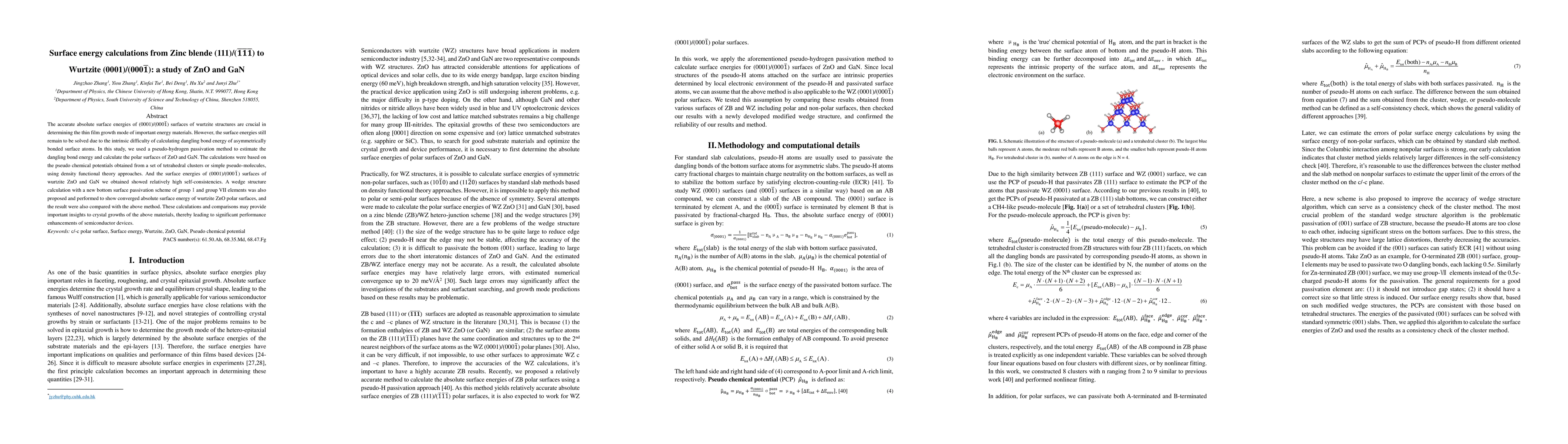 The accurate absolute surface energies of (0001)/(000-1) surfaces of wurtzite structures are crucial in determining the thin film growth mode of important energy materials. However, the surface energies still remain to be solved due to the intrinsic difficulty of calculating dangling bond energy of asymmetrically bonded surface atoms. In this study, we used a pseudo-hydrogen passivation method to estimate the dangling bond energy and calculate the polar surfaces of ZnO and GaN. The calculations were based on the pseudo chemical potentials obtained from a set of tetrahedral clusters or simple pseudo-molecules, using density functional theory approaches. And the surface energies of (0001)/(000-1) surfaces of wurtzite ZnO and GaN we obtained showed relatively high self-consistencies. A wedge structure calculation with a new bottom surface passivation scheme of group I and group VII elements was also proposed and performed to show converged absolute surface energy of wurtzite ZnO polar surfaces, and the result were also compared with the above method. These calculations and comparisons may provide important insights to crystal growths of the above materials, thereby leading to significant performance enhancements of semiconductor devices.