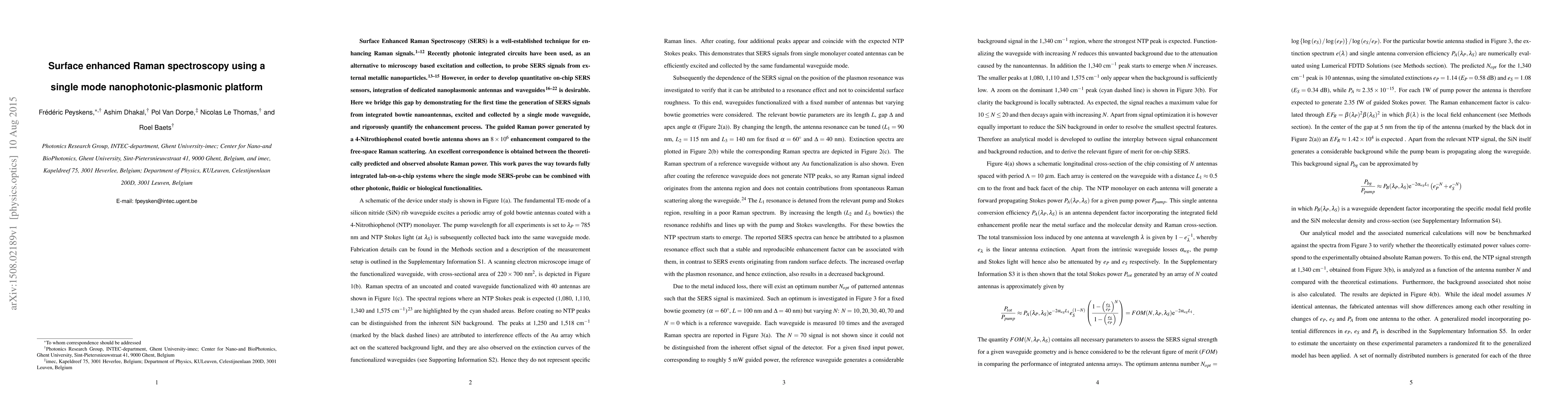 This research demonstrates the first integrated SERS platform using bowtie nanoantennas coupled with a single mode waveguide, achieving an 8 x 10^6 enhancement in Raman signal. The work shows promising steps towards fully integrated lab-on-a-chip systems.