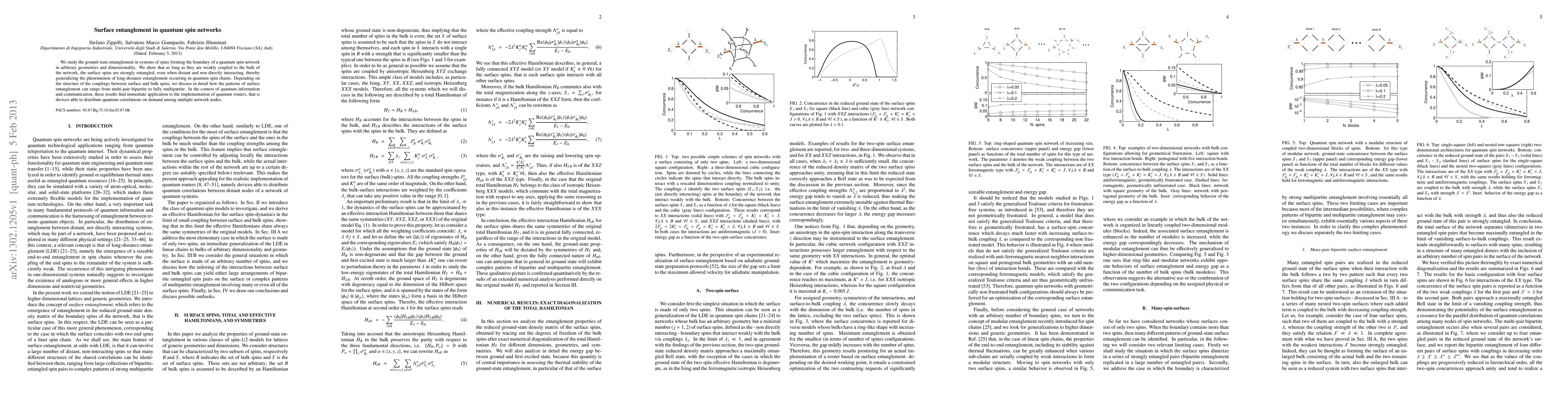 We study the ground-state entanglement in systems of spins forming the boundary of a quantum spin network in arbitrary geometries and dimensionality. We show that as long as they are weakly coupled to the bulk of the network, the surface spins are strongly entangled, even when distant and non directly interacting, thereby generalizing the phenomenon of long-distance entanglement occurring in quantum spin chains. Depending on the structure of the couplings between surface and bulk spins, we discuss in detail how the patterns of surface entanglement can range from multi-pair bipartite to fully multipartite. In the context of quantum information and communication, these results find immediate application to the implementation of quantum routers, that is devices able to distribute quantum correlations on demand among multiple network nodes.