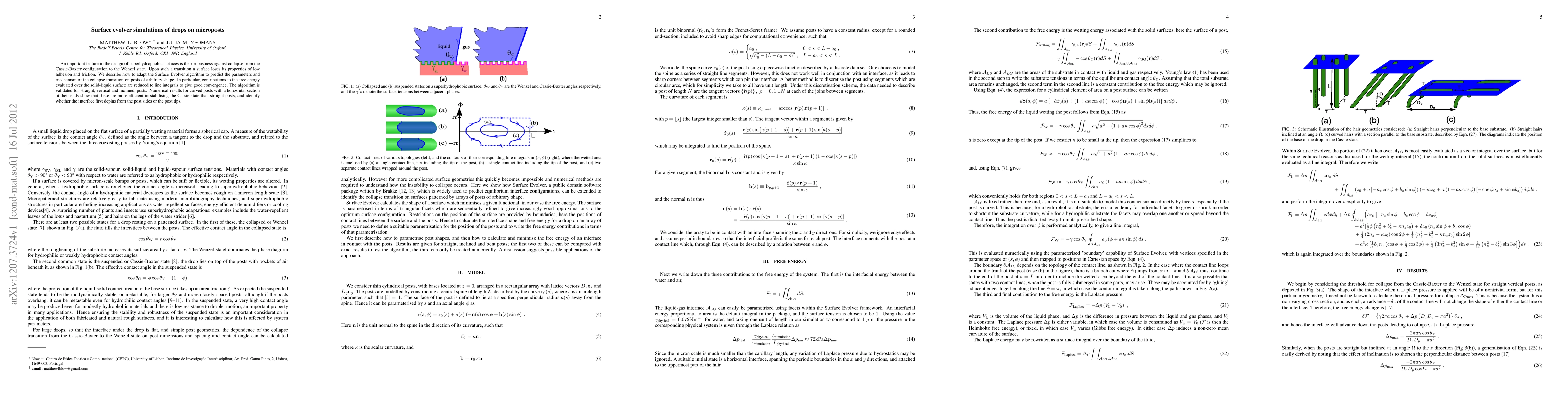 An important feature in the design of superhydrophobic surfaces is their robustness against collapse from the Cassie-Baxter configuration to the Wenzel state. Upon such a transition a surface loses its properties of low adhesion and friction. We describe how to adapt the Surface Evolver algorithm to predict the parameters and mechanism of the collapse transition on posts of arbitrary shape. In particular, contributions to the free energy evaluated over the solid-liquid surface are reduced to line integrals to give good convergence. The algorithm is validated for straight, vertical and inclined, posts. Numerical results for curved posts with a horizontal section at their ends show that these are more efficient in stabilising the Cassie state than straight posts, and identify whether the interface first depins from the post sides or the post tips.