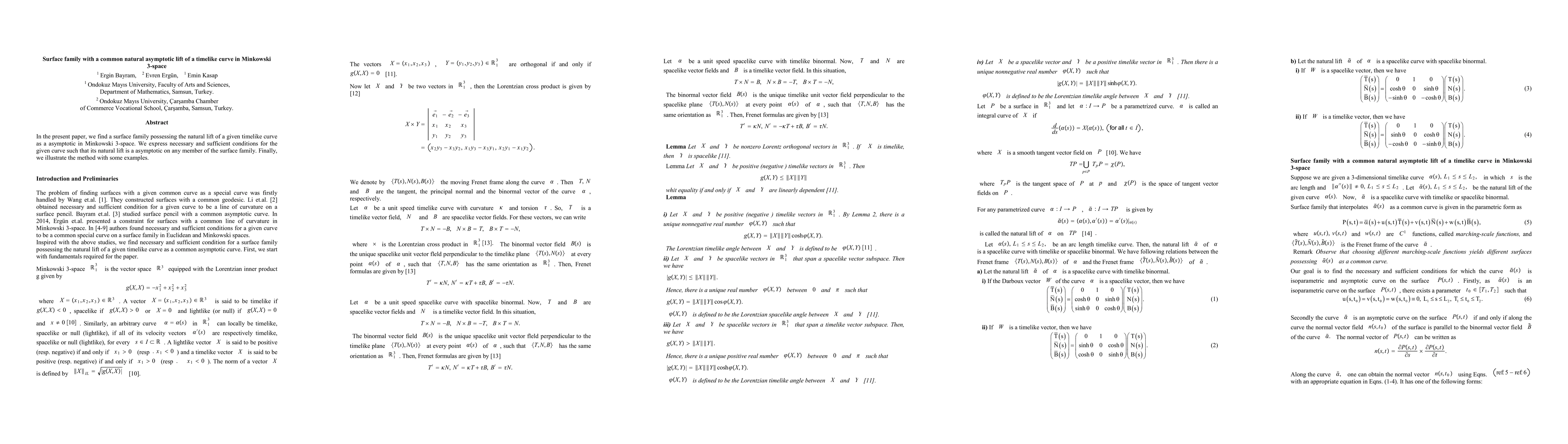 In the present paper, we find a surface family possessing the natural lift of a given timelike curve as a asymptotic in Minkowski 3-space. We express necessary and sufficient conditions for the given curve such that its natural lift is a asymptotic on any member of the surface family. Finally, we illustrate the method with some examples.