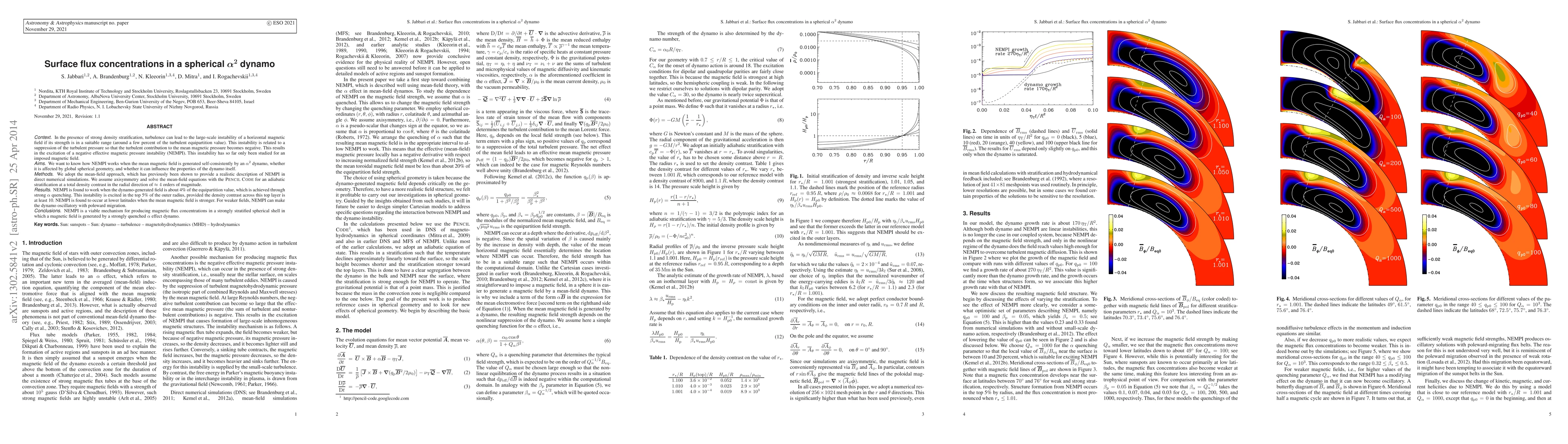 This study investigates the negative effective magnetic pressure instability (NEMPI) in a strongly stratified spherical shell, focusing on how it interacts with a self-consistently generated $\alpha^2$ dynamo. The research finds that NEMPI can occur when the dynamo-generated field is about 4% of the equipartition value, leading to magnetic flux concentrations and potentially making the dynamo oscillatory with poleward migration.