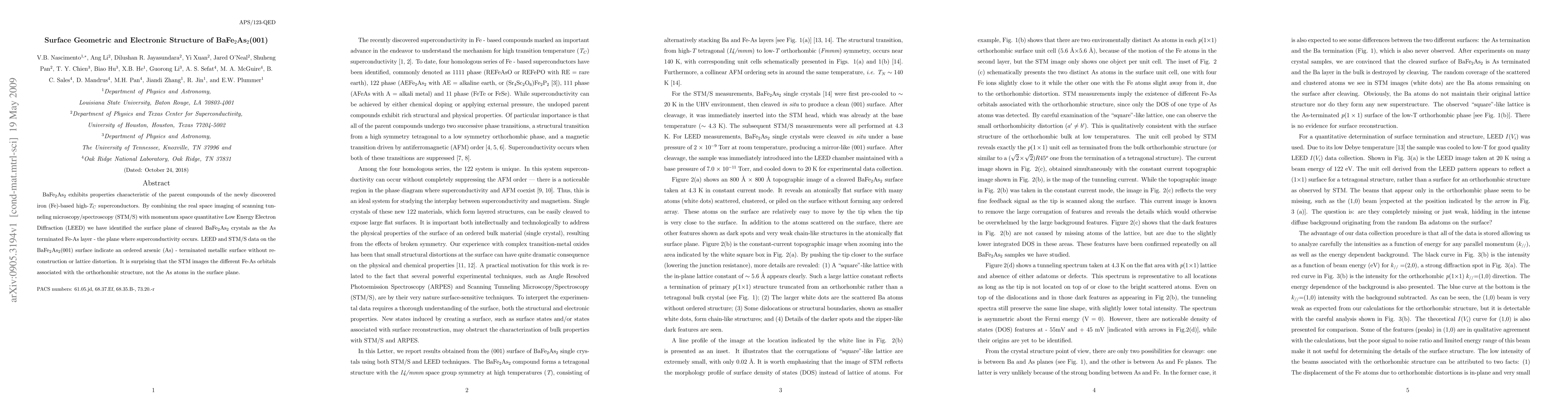 BaFe2As2 exhibits properties characteristic of the parent compounds of the newly discovered iron (Fe)-based high-TC superconductors. By combining the real space imaging of scanning tunneling microscopy/spectroscopy (STM/S) with momentum space quantitative Low Energy Electron Diffraction (LEED) we have identified the surface plane of cleaved BaFe2As2 crystals as the As terminated Fe-As layer - the plane where superconductivity occurs. LEED and STM/S data on the BaFe2As2(001) surface indicate an ordered arsenic (As) - terminated metallic surface without reconstruction or lattice distortion. It is surprising that the STM images the different Fe-As orbitals associated with the orthorhombic structure, not the As atoms in the surface plane.