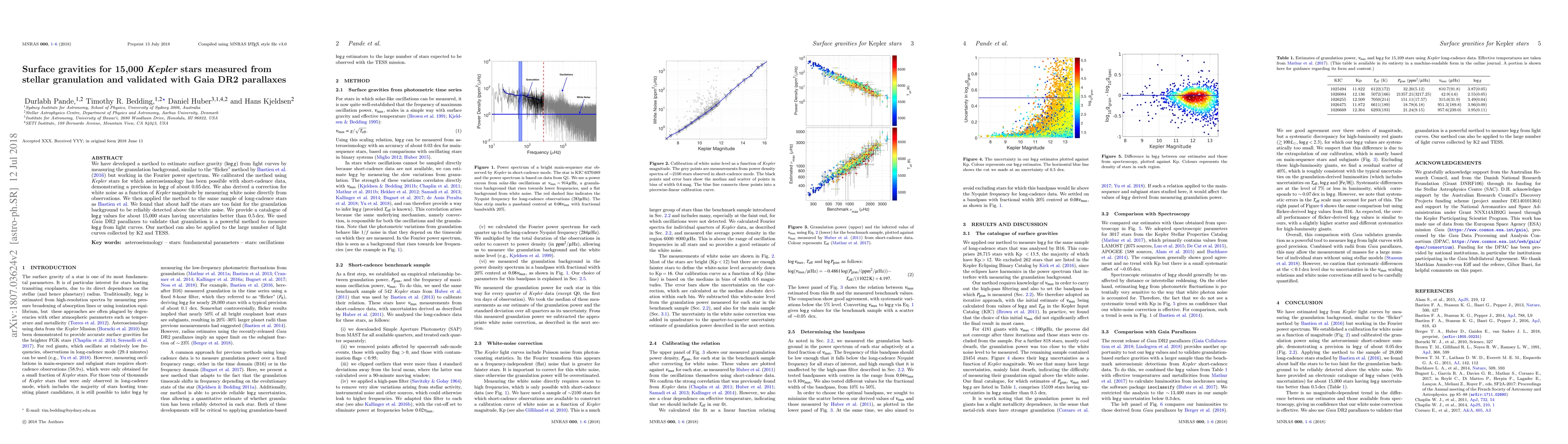 This paper presents a method to estimate surface gravity (log g) from stellar granulation in Kepler light curves, achieving a precision of about 0.05 dex. The method is validated using Gaia DR2 parallaxes, providing log g values for 15,000 stars with uncertainties better than 0.5 dex.