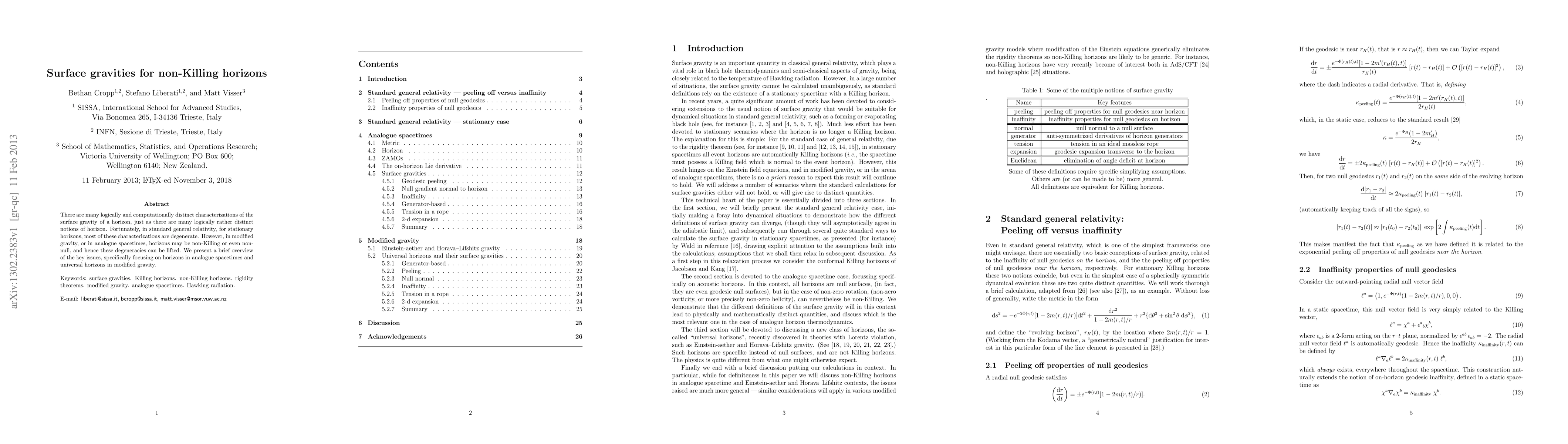 This paper discusses the complexities in defining surface gravity for non-Killing horizons, particularly in modified gravity and analogue spacetimes, where traditional degeneracies do not apply. It provides an overview of these challenges and focuses on universal horizons in modified gravity.