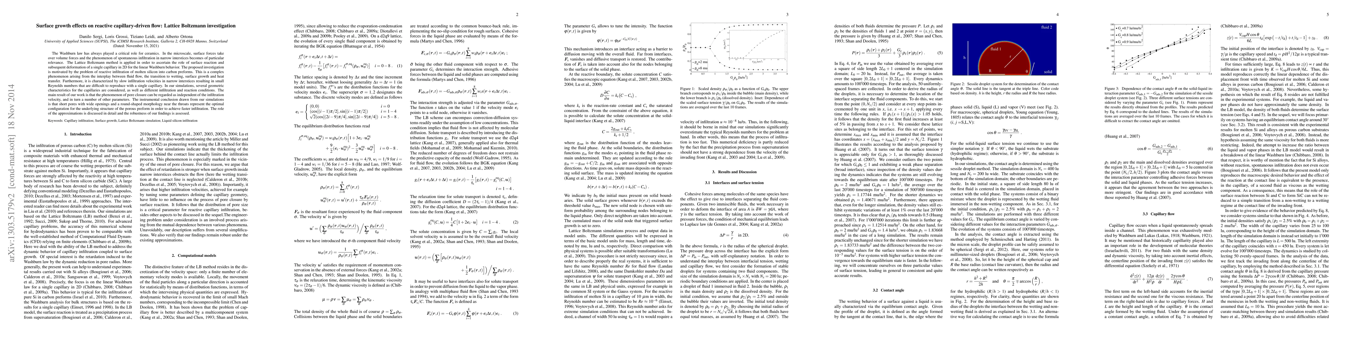 The Washburn law has always played a critical role for ceramics. In the microscale, surface forces take over volume forces and the phenomenon of spontaneous infiltration in narrow interstices becomes of particular relevance. The Lattice Boltzmann method is applied in order to ascertain the role of surface reaction and subsequent deformation of a single capillary in 2D for the linear Washburn behavior. The proposed investigation is motivated by the problem of reactive infiltration of molten silicon into carbon preforms. This is a complex phenomenon arising from the interplay between fluid flow, the transition to wetting, surface growth and heat transfer. Furthermore, it is characterized by slow infiltration velocities in narrow interstices resulting in small Reynolds numbers that are difficult to reproduce with a single capillary. In our simulations, several geometric characteristics for the capillaries are considered, as well as different infiltration and reaction conditions. The main result of our work is that the phenomenon of pore closure can be regarded as independent of the infiltration velocity, and in turn a number of other parameters. The instrumental conclusion drawn from our simulations is that short pores with wide openings and a round-shaped morphology near the throats represent the optimal configuration for the underlying structure of the porous preform in order to achieve faster infiltration. The role of the approximations is discussed in detail and the robustness of our findings is assessed.