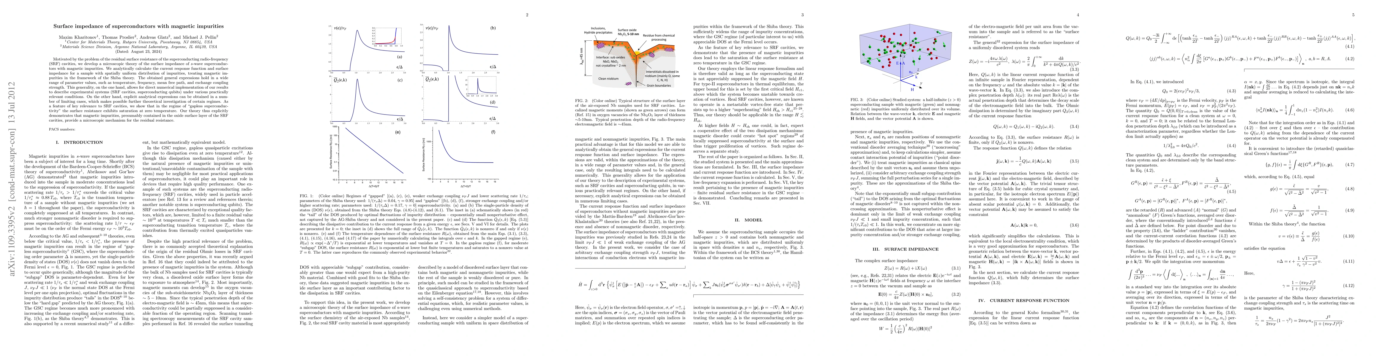This paper develops a microscopic theory to explain the surface impedance of s-wave superconductors with magnetic impurities, showing that these impurities can cause saturation of surface resistance in "gapless superconductivity," providing a mechanism for residual resistance in superconducting radio-frequency cavities. The theory is analytically general and applicable to various conditions, facilitating both numerical and theoretical investigations.