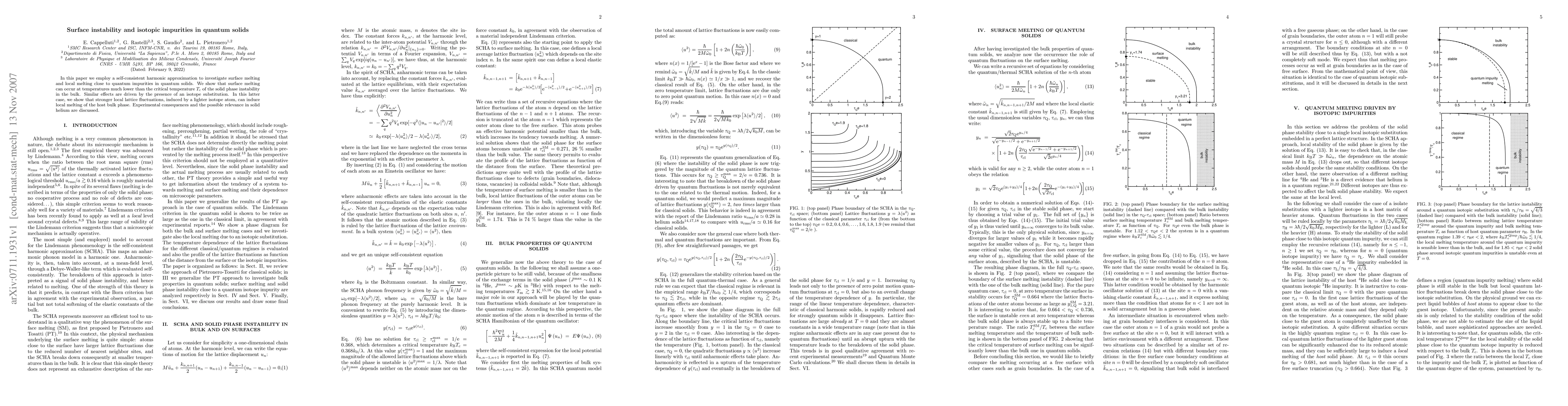 This paper investigates surface melting and local melting near quantum impurities in quantum solids using a self-consistent harmonic approximation. It finds that surface melting can occur at temperatures well below the bulk's critical temperature, and that lighter isotope substitution can induce stronger local lattice fluctuations, leading to local melting.