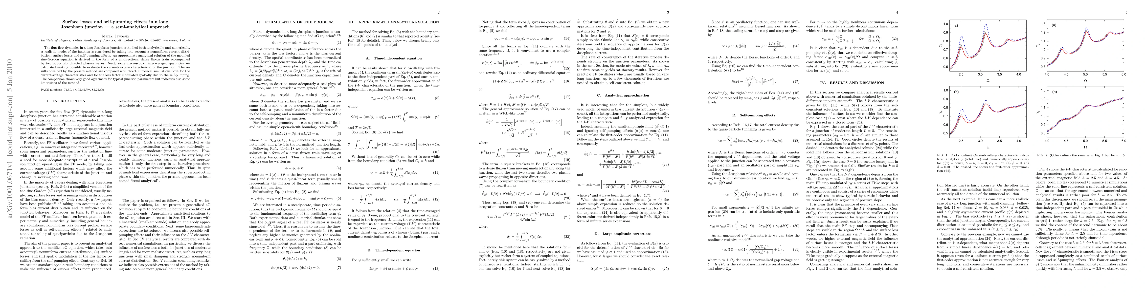 The flux-flow dynamics in a long Josephson junction is studied both analytically and numerically. A realistic model of the junction is considered by taking into account a nonuniform current distribution, surface losses and self-pumping effects. An approximate analytical solution of the modified sine-Gordon equation is derived in the form of a unidirectional dense fluxon train accompanied by two oppositely directed plasma waves. Next, some macroscopic time-averaged quantities are calculated making possible to evaluate the current-voltage characteristic of the junction. The results obtained by the present method are compared with direct numerical simulations both for the current-voltage characteristics and for the loss factor modulated spatially due to the self-pumping. The comparison shows very good agreement for typical junction parameters but indicates also some limitations of the method.