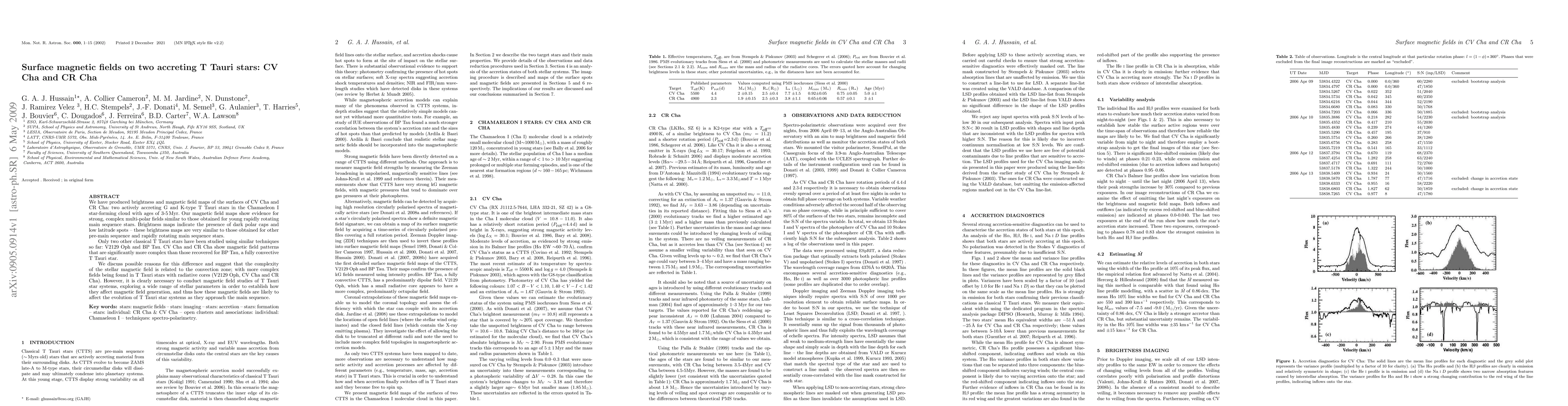 This paper presents magnetic field and brightness maps of two accreting T Tauri stars, CV Cha and CR Cha, revealing strong, complex multi-polar fields and dark polar caps, similar to other young stars. The study suggests that magnetic field complexity correlates with the presence of radiative cores, highlighting the need for broader magnetic field studies across T Tauri stars to understand their evolutionary impact.