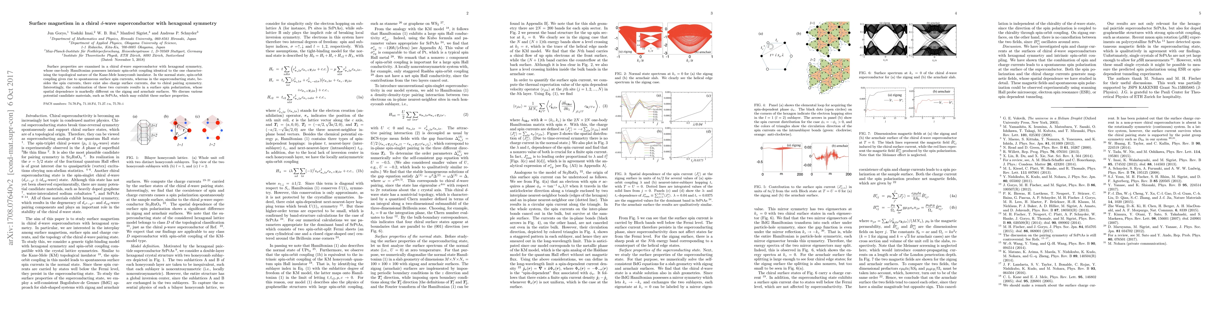 Surface properties are examined in a chiral d-wave superconductor with hexagonal symmetry, whose one-body Hamiltonian possesses the intrinsic spin-orbit coupling identical to the one characterizing the topological nature of the Kane-Mele honeycomb insulator. In the normal state spin-orbit coupling gives rise to spontaneous surface spin currents, whereas in the superconducting state there exist besides the spin currents also charge surface currents, due to the chiral pairing symmetry. Interestingly, the combination of these two currents results in a surface spin polarization, whose spatial dependence is markedly different on the zigzag and armchair surfaces. We discuss various potential candidate materials, such as SrPtAs, which may exhibit these surface properties.