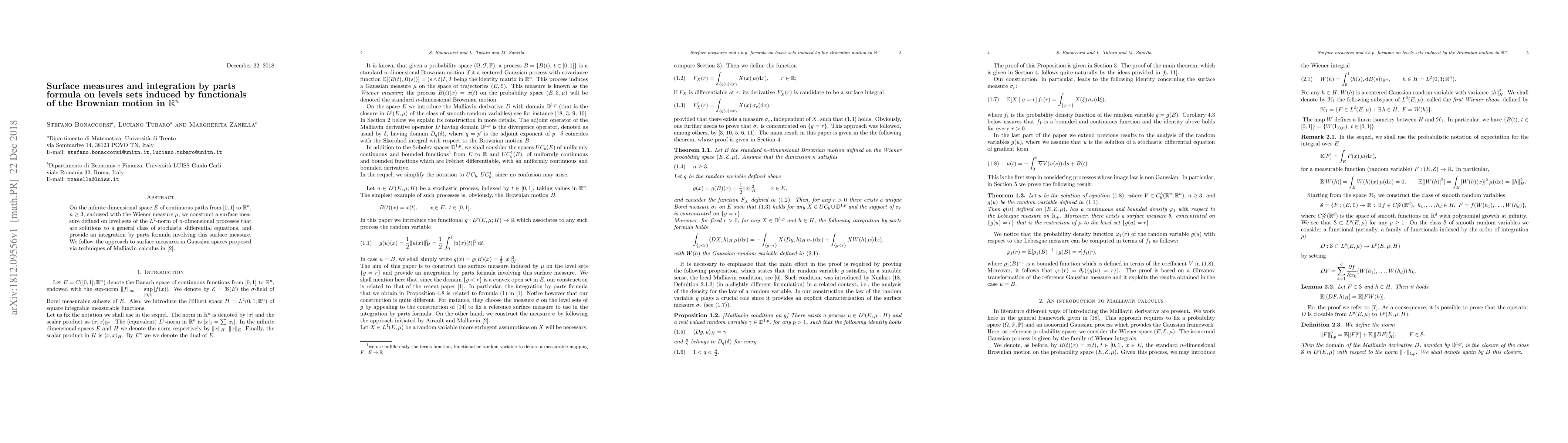 This paper constructs a surface measure on level sets of $L^2$-norms of solutions to stochastic gradient system-type equations in the infinite-dimensional space of continuous paths from $[0,1]$ to $\mathbb R^n$. It provides an integration by parts formula using techniques from Malliavin calculus.