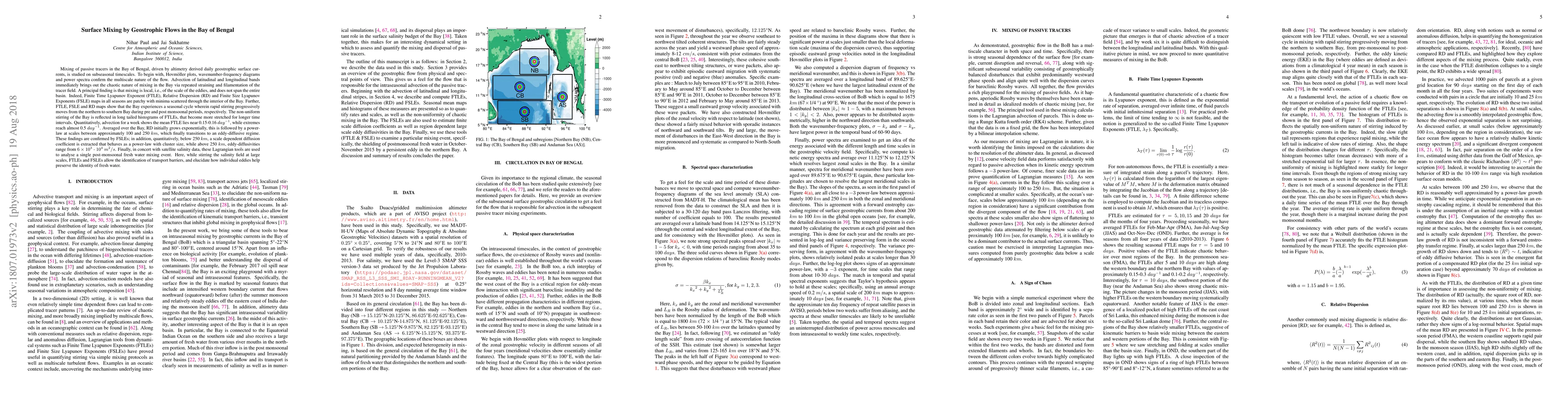 Research in the Bay of Bengal reveals that mixing is local to eddy scales, with chaotic advection leading to repeated straining and filamentation of tracers, and exhibits a mix of exponential, power-law, and eddy-diffusive regimes at different scales.