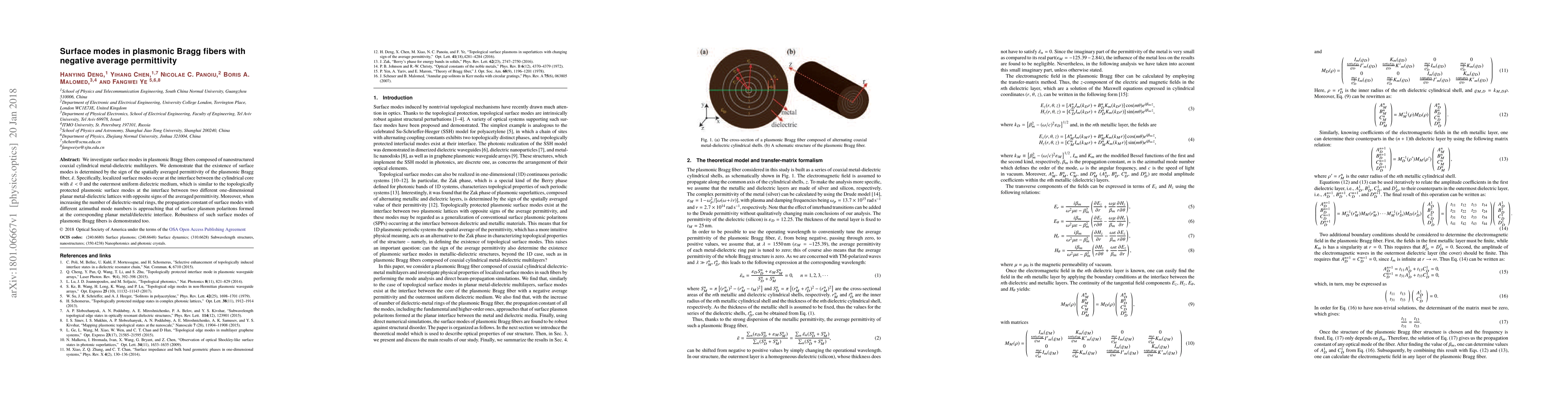 We investigate surface modes in plasmonic Bragg fibers composed of nanostructured coaxial cylindrical metal-dielectric multilayers. We demonstrate that the existence of surface modes is determined by the sign of the spatially averaged permittivity of the plasmonic Bragg fiber, $\bar{% \varepsilon}$. Specifically, localized surface modes occur at the interface between the cylindrical core with $\bar{\varepsilon}<0$ and the outermost uniform dielectric medium, which is similar to the topologically protected plasmonic surface modes at the interface between two different one-dimensional planar metal-dielectric lattices with opposite signs of the averaged permittivity. Moreover, when increasing the number of dielectric-metal rings, the propagation constant of surface modes with different azimuthal mode numbers is approaching that of surface plasmon polaritons formed at the corresponding planar metal/dielectric interface. Robustness of such surface modes of plasmonic Bragg fibers is demonstrated too.