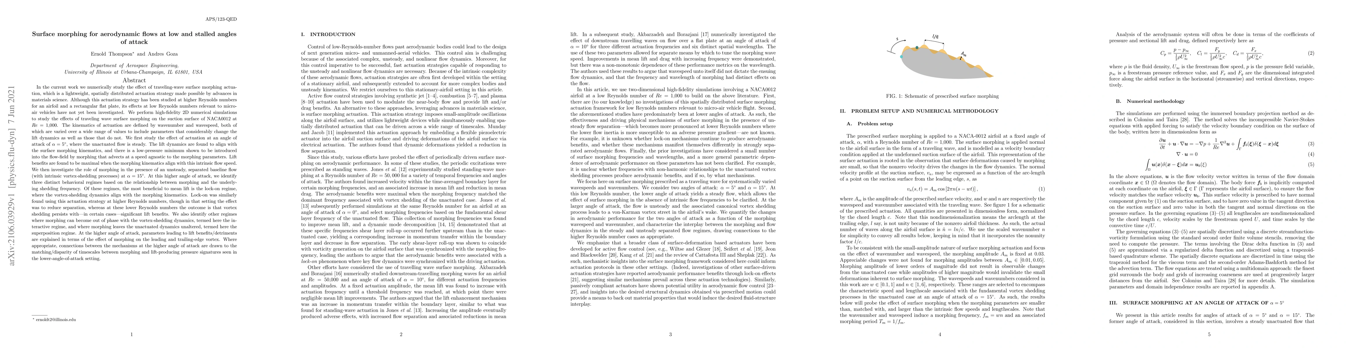 Researchers studied how a surface morphing technique affects airflow around an airfoil at low and stalled angles of attack, finding that it can improve lift by aligning with the flow's natural dynamics.