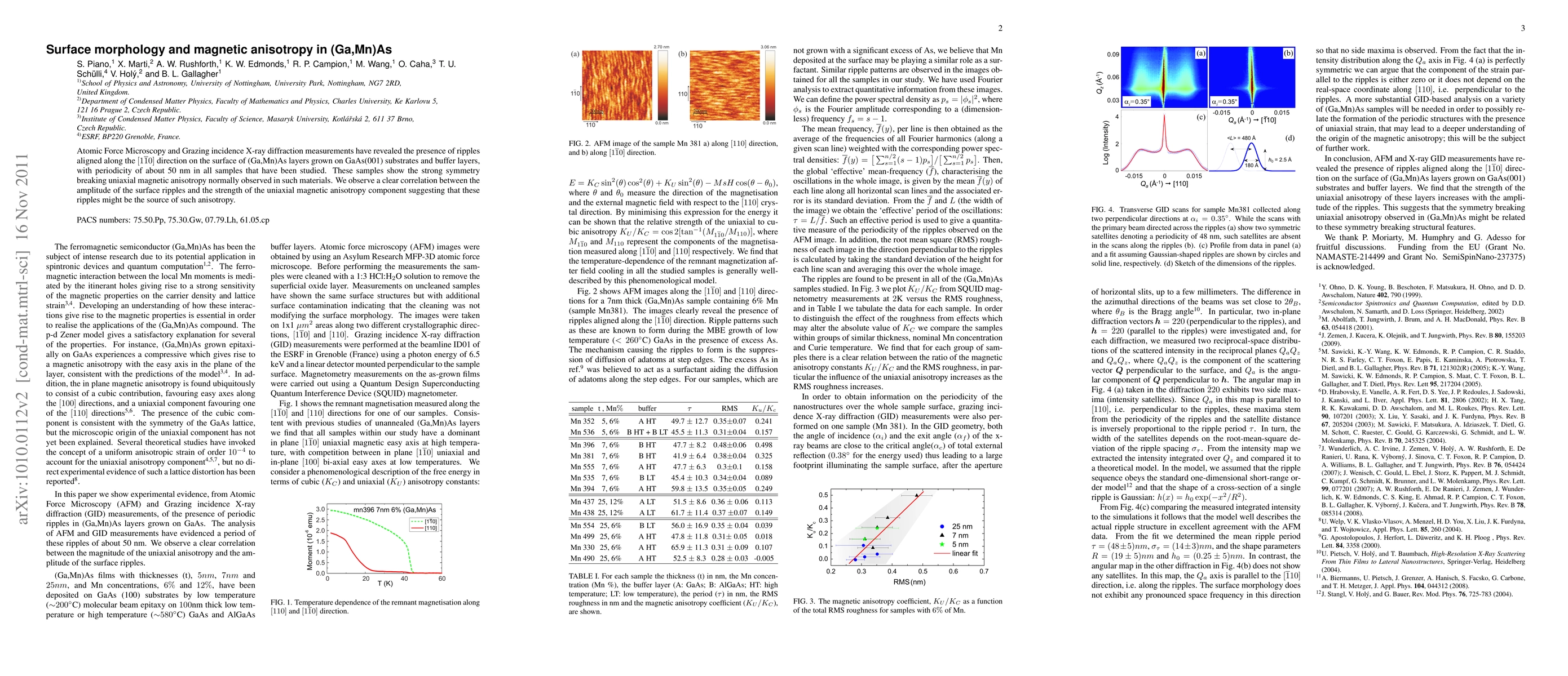 Atomic Force Microscopy and Grazing incidence X-ray diffraction reveal 50 nm periodic ripples on (Ga,Mn)As surfaces aligned along $[1ar{1}0]$. These ripples correlate with the uniaxial magnetic anisotropy strength, suggesting ripples may generate this anisotropy.