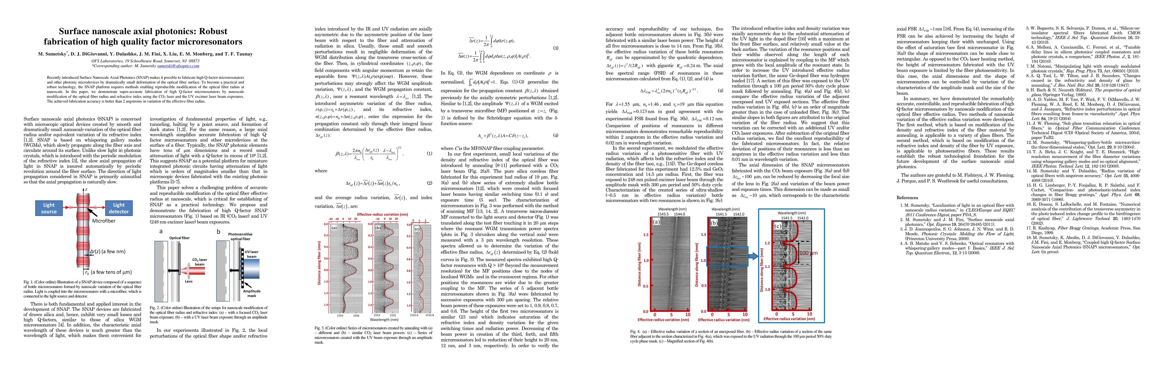 This research demonstrates the fabrication of high Q-factor microresonators using Surface Nanoscale Axial Photonics (SNAP) through precise nanoscale modifications of optical fiber radius and refractive index with CO2 and UV excimer lasers, achieving accuracy better than 2 angstroms. SNAP promises to be a robust and practical technology for photonic microdevice fabrication.