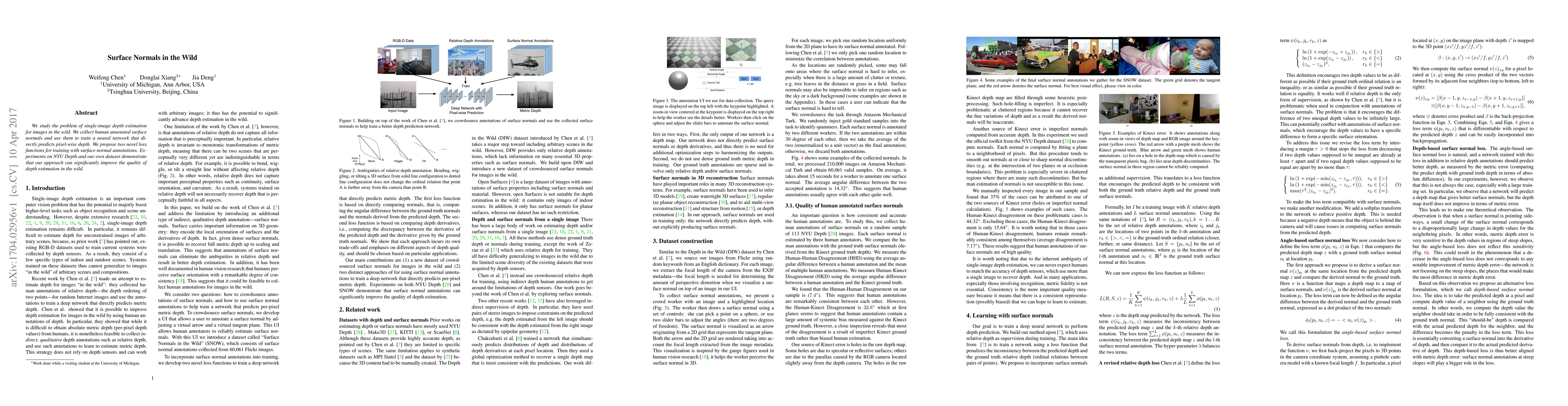 We study the problem of single-image depth estimation for images in the wild. We collect human annotated surface normals and use them to train a neural network that directly predicts pixel-wise depth. We propose two novel loss functions for training with surface normal annotations. Experiments on NYU Depth and our own dataset demonstrate that our approach can significantly improve the quality of depth estimation in the wild.