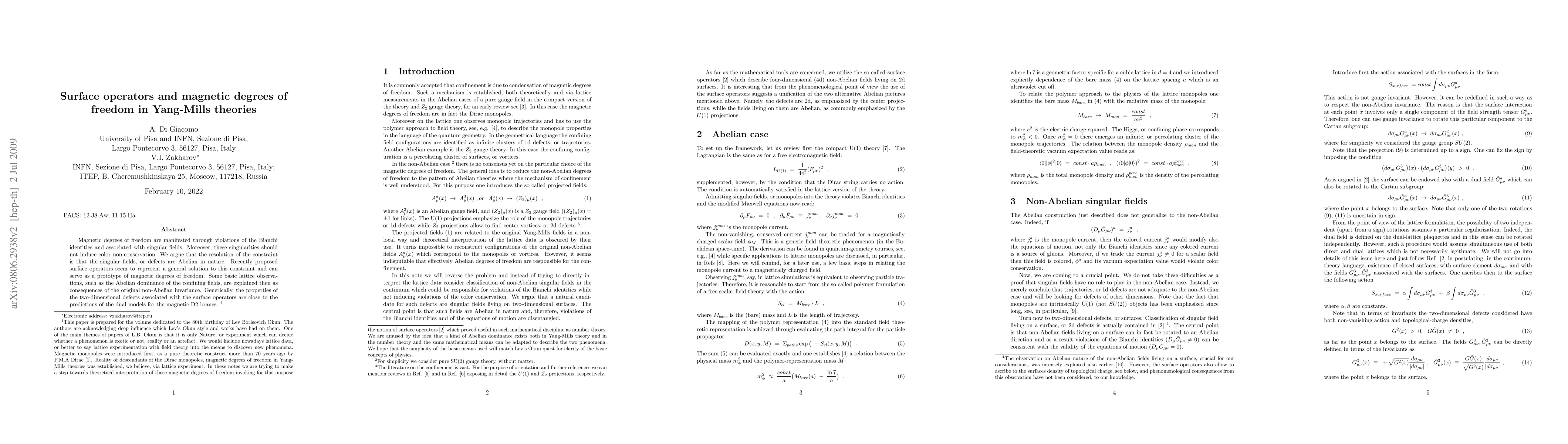 This paper explores the magnetic degrees of freedom in Yang-Mills theories, proposing that singular fields causing violations of Bianchi identities are Abelian in nature. It suggests that surface operators provide a solution to these constraints and serve as a prototype for magnetic degrees of freedom, explaining lattice observations like Abelian dominance.