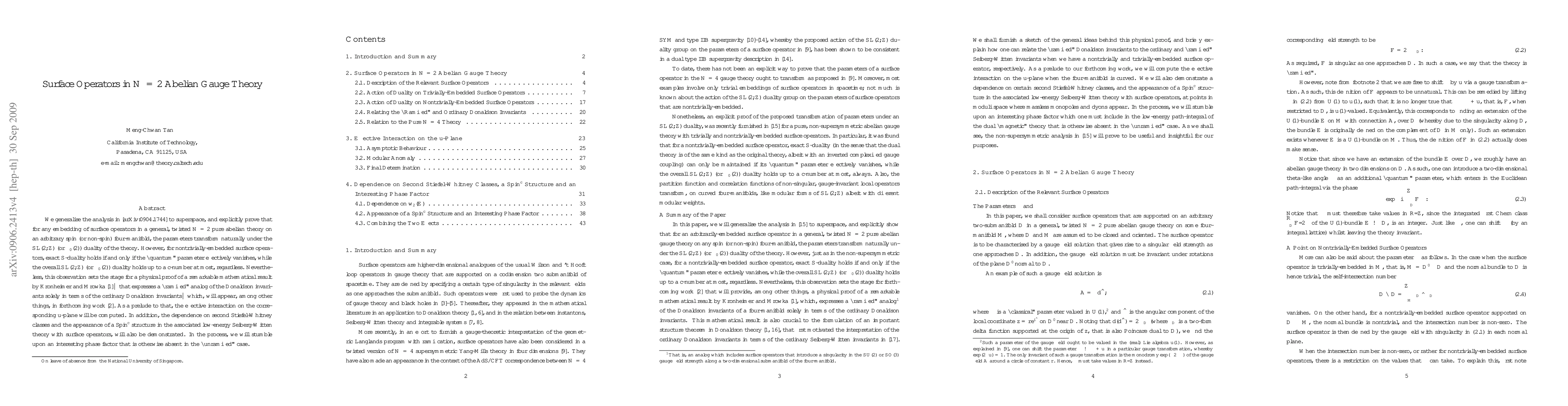 We generalise the analysis in [arXiv:0904.1744] to superspace, and explicitly prove that for any embedding of surface operators in a general, twisted N=2 pure abelian theory on an arbitrary four-manifold, the parameters transform naturally under the SL(2,Z) duality of the theory. However, for nontrivially-embedded surface operators, exact S-duality holds if and only if the "quantum" parameter effectively vanishes, while the overall SL(2,Z) duality holds up to a c-number at most, regardless. Nevertheless, this observation sets the stage for a physical proof of a remarkable mathematical result by Kronheimer and Mrowka--that expresses a "ramified" analog of the Donaldson invariants solely in terms of the ordinary Donaldson invariants--which, will appear, among other things, in forthcoming work. As a prelude to that, the effective interaction on the corresponding u-plane will be computed. In addition, the dependence on second Stiefel-Whitney classes and the appearance of a Spin^c structure in the associated low-energy Seiberg-Witten theory with surface operators, will also be demonstrated. In the process, we will stumble upon an interesting phase factor that is otherwise absent in the "unramified" case.