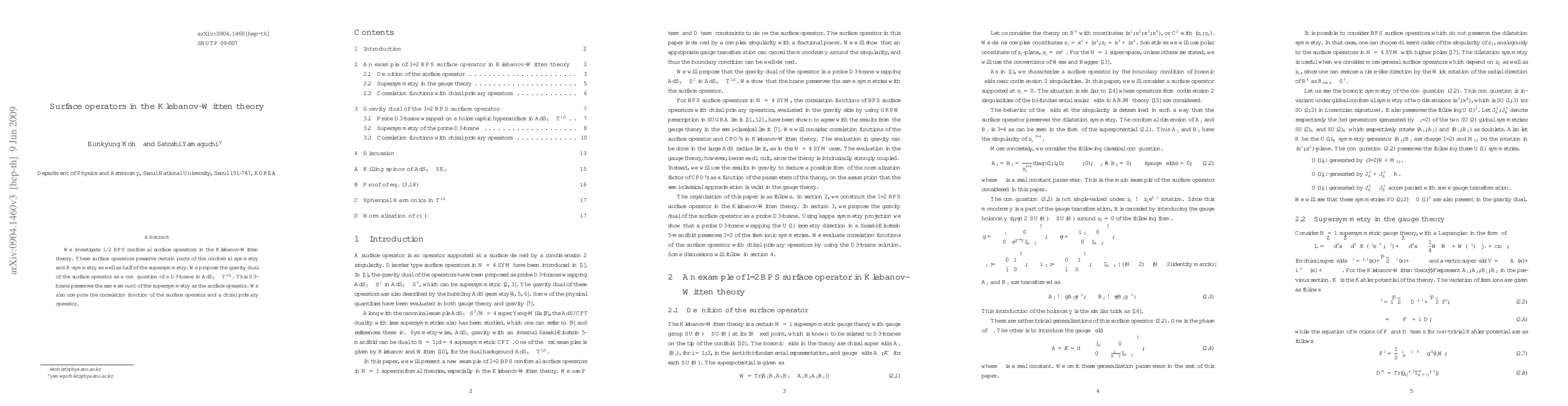 This paper studies 1/2 BPS conformal surface operators in the Klebanov-Witten theory, proposing a D3-brane in AdS_5 x T^{1,1} as their gravity dual, and computes the correlation function between the surface operator and a chiral primary operator.
