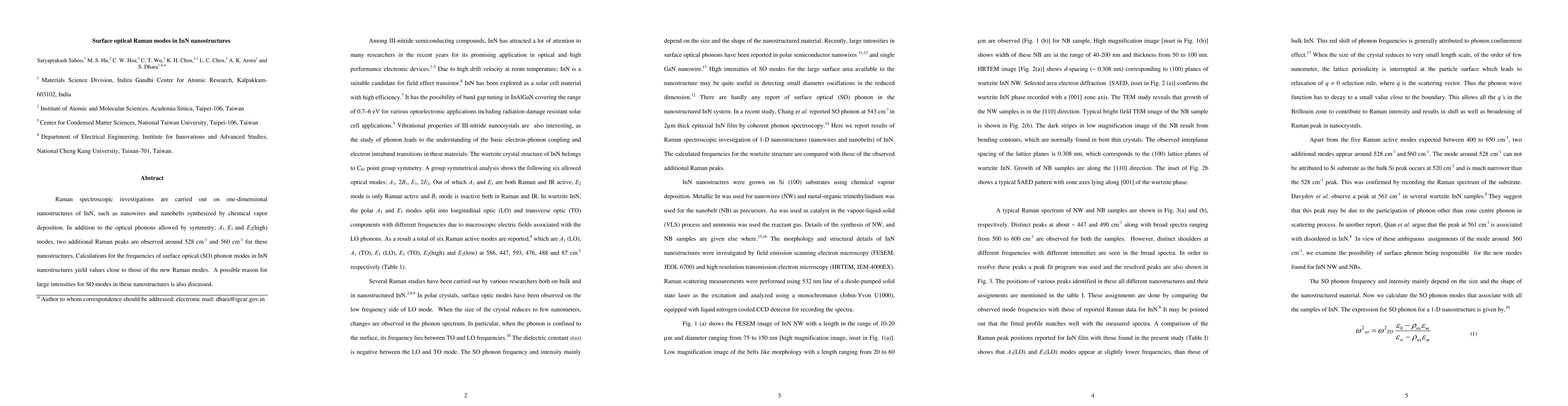 This study investigates Raman spectroscopy of InN nanowires and nanobelts, revealing additional peaks at 528 cm-1 and 560 cm-1 alongside typical phonon modes. Calculations suggest these peaks correspond to surface optical phonon modes, with high intensities likely due to the nanostructures' surface characteristics.