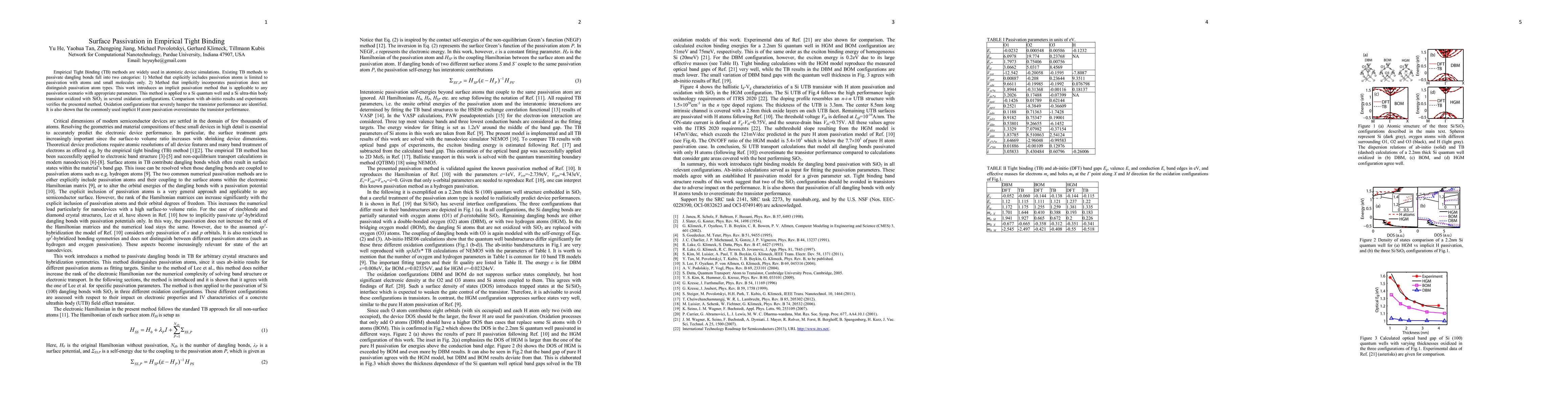 A new implicit passivation method is introduced for Empirical Tight Binding simulations, improving accuracy over existing methods and identifying optimization opportunities for Si quantum well and transistor devices.