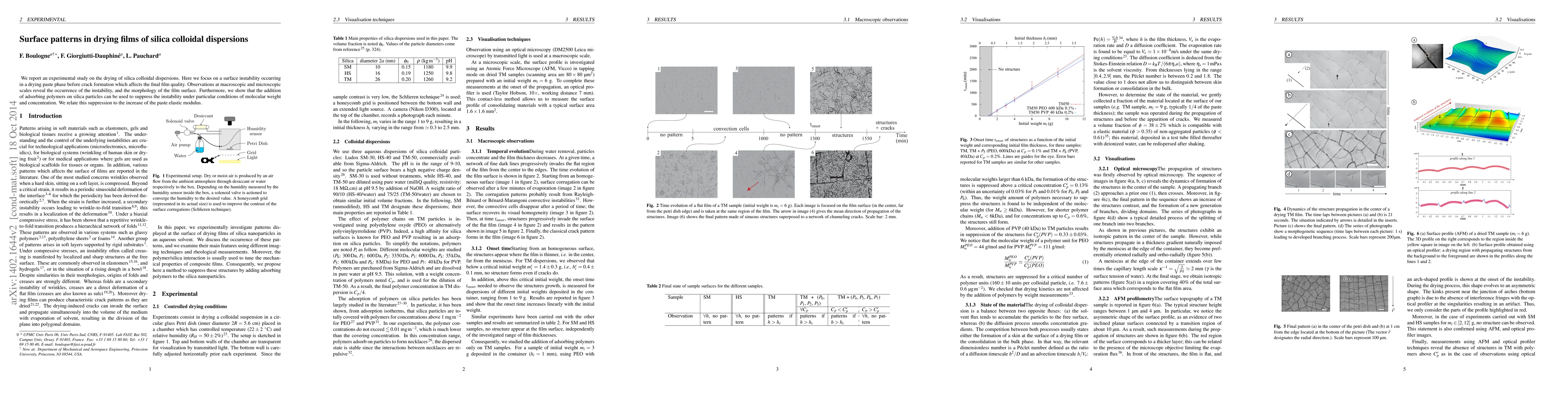 This study investigates surface instabilities in drying silica colloidal dispersions, revealing a critical phase before crack formation that impacts film quality. The addition of specific adsorbing polymers can suppress these instabilities, correlating with an increase in the paste's elastic modulus.