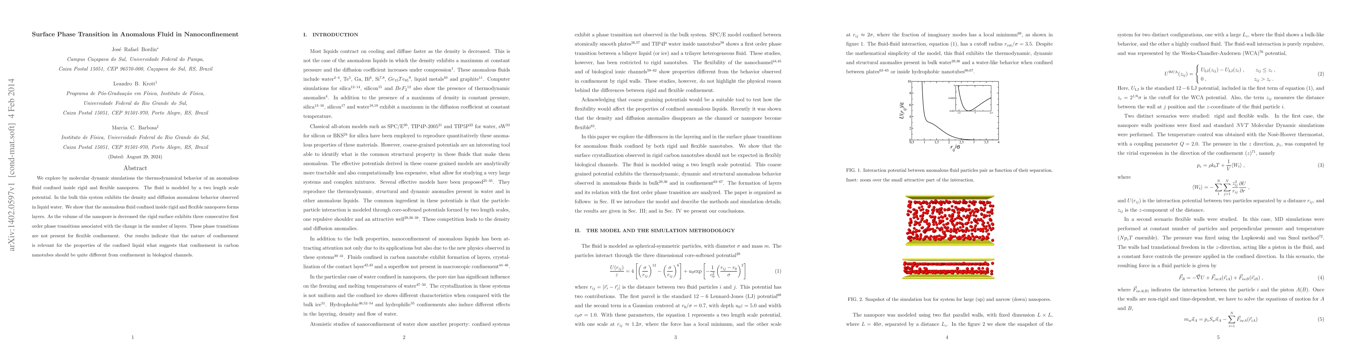 This study uses molecular dynamics simulations to investigate the thermodynamic behavior of an anomalous fluid confined within rigid and flexible nanopores, revealing that the fluid forms layers and undergoes three consecutive first-order phase transitions in rigid confinement as pore volume decreases, while no such transitions occur in flexible confinement. The findings suggest confinement type significantly impacts the properties of the fluid, implying differences in confinement effects in carbon nanotubes versus biological channels.