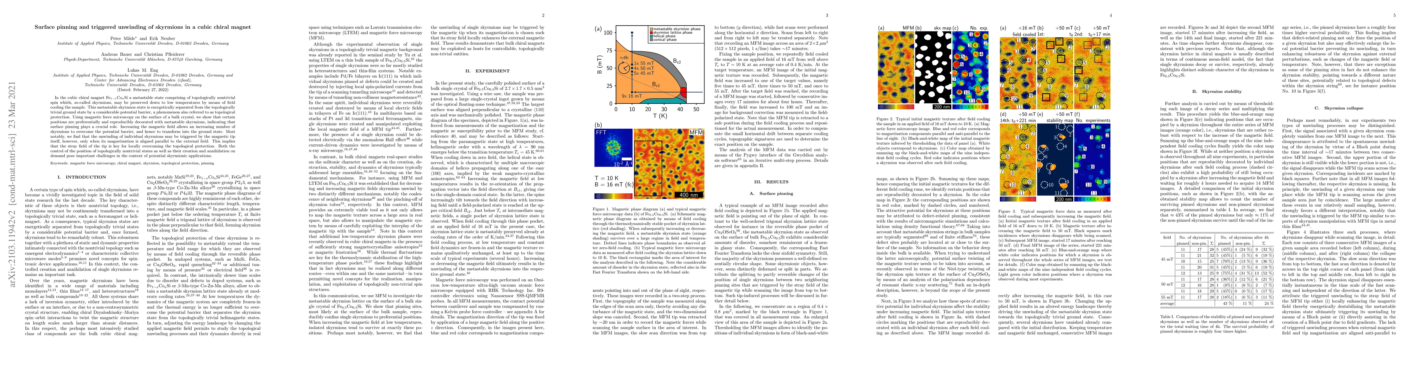 Researchers discovered that surface pinning helps preserve metastable skyrmions in a cubic chiral magnet, allowing them to overcome a potential barrier with increasing magnetic field. The study also found that the stray field of a magnetic tip can trigger the unwinding of individual skyrmions.