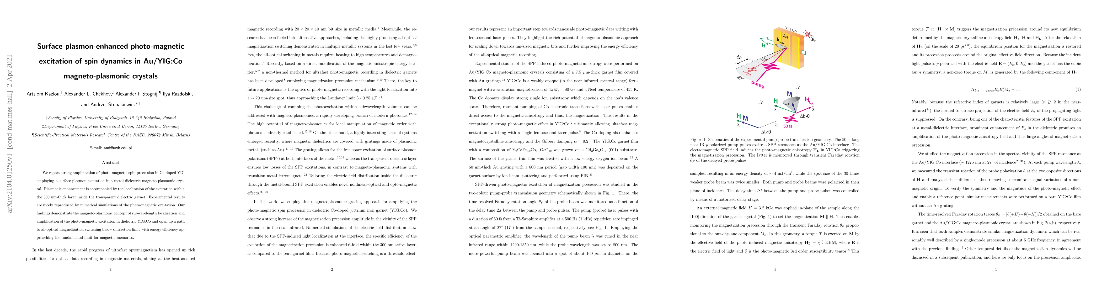 Researchers found strong amplification of photo-magnetic spin precession in a specific type of magneto-plasmonic crystal, enabling potential for all-optical magnetization switching with high energy efficiency.