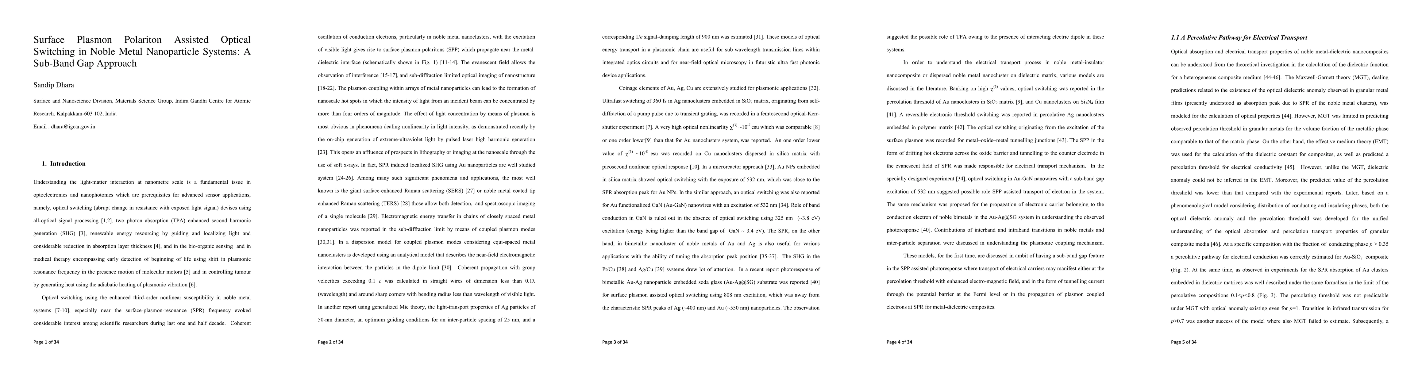 In a proposed book chapter surface plasmon polariton assisted optical switching in noble metal nanoparticle systems is discussed in the sub-band gap formalism.