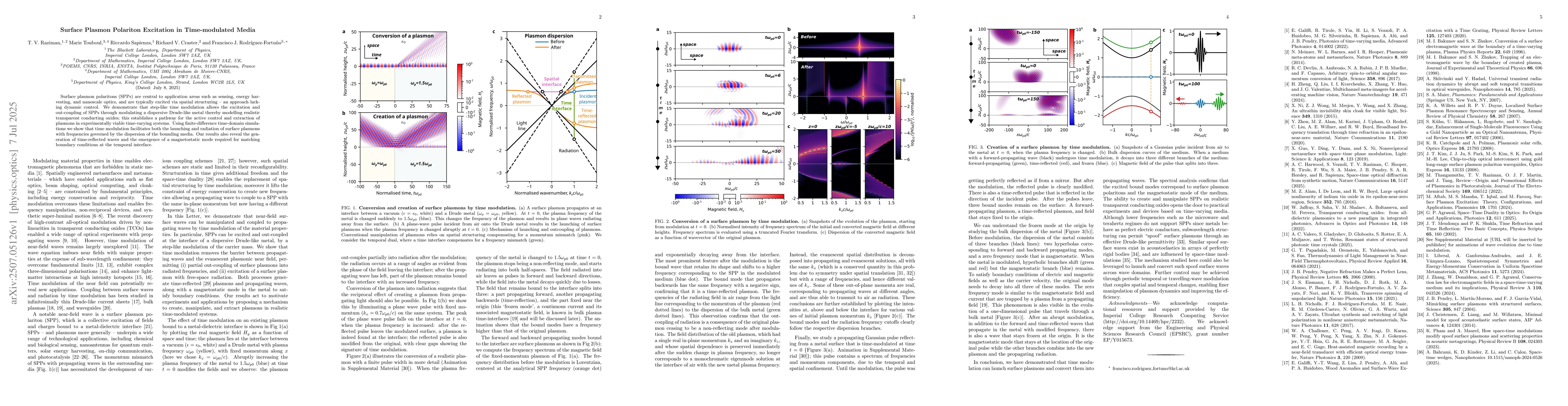 Surface plasmon polaritons (SPPs) are central to application areas such as sensing, energy harvesting, and nanoscale optics, and are typically excited via spatial structuring -- an approach lacking dynamic control. We demonstrate that step-like time modulation allows the excitation and out-coupling of SPPs through modulating a dispersive Drude-like metal thereby modelling realistic transparent conducting oxides; this establishes a pathway for the active control and extraction of plasmons in experimentally viable time-varying systems. Using finite-difference time-domain simulations we show that time modulation facilitates both the launching and radiation of surface plasmons with frequencies governed by the dispersion of the bounding media. Our results also reveal the generation of time-reflected waves and the emergence of a magnetostatic mode required for matching boundary conditions at the temporal interface.