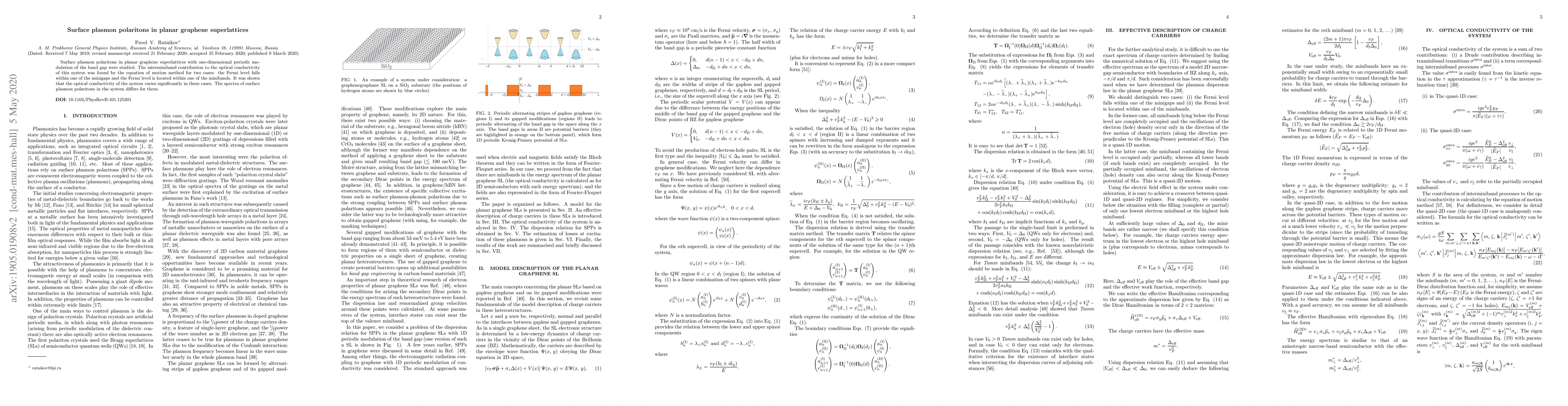 The paper presents a detailed theoretical framework for understanding and calculating the optical conductivity and SPP dispersion relations in graphene superlattices, introducing methods to control SPPs through Fermi level engineering.