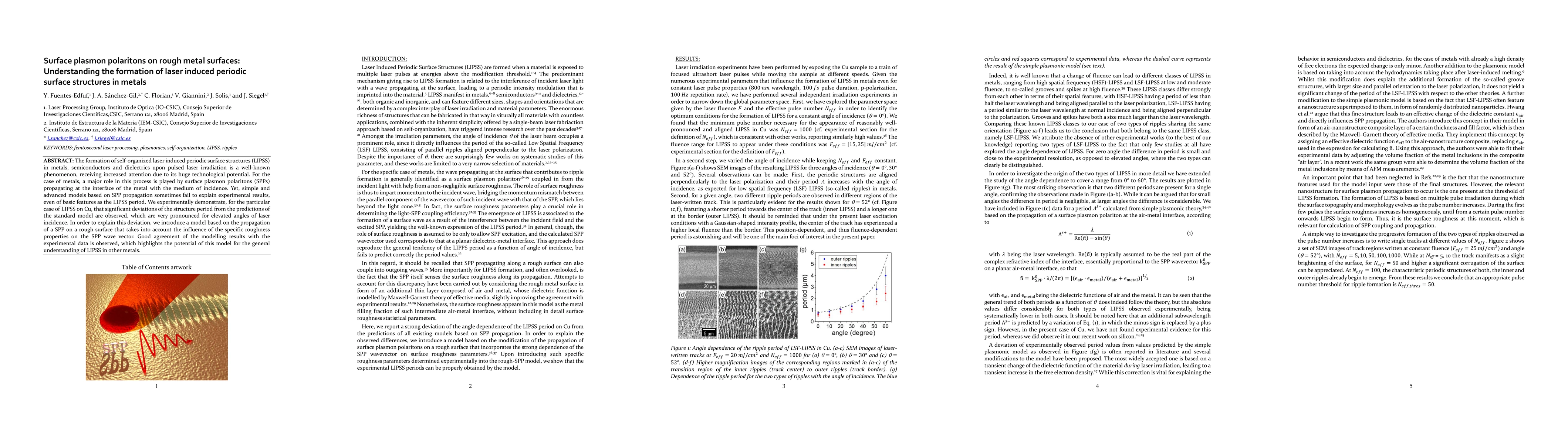 This paper investigates the formation of laser induced periodic surface structures (LIPSS) in metals, particularly copper, attributing deviations in structure period to surface plasmon polaritons (SPPs) on rough metal surfaces. A new model accounting for roughness-induced changes in the SPP wave vector explains observed discrepancies, offering improved understanding of LIPSS formation.