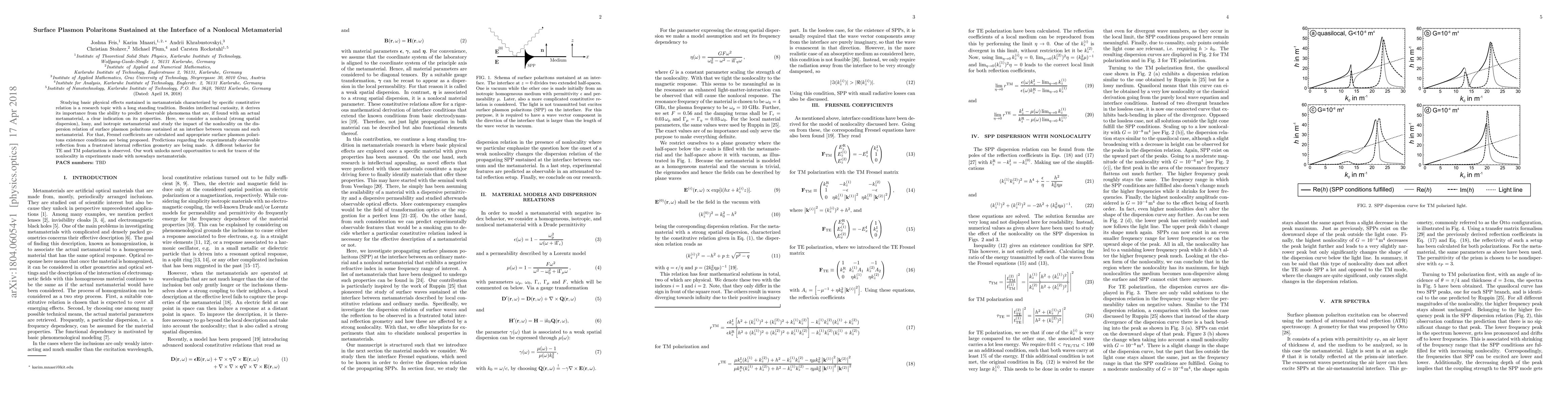 Studying basic physical effects sustained in metamaterials characterized by specific constitutive relation is a research topic with a long standing tradition. Besides intellectual curiosity, it derives its importance from the ability to predict observable phenomena that are, if found with an actual metamaterial, a clear indication on its properties. Here, we consider a nonlocal (strong spatial dispersion), lossy, and isotropic metamaterial and study the impact of the nonlocality on the dispersion relation of surface plasmon polaritons sustained at an interface between vacuum and such metamaterial. For that, Fresnel coefficients are calculated and appropriate surface plasmon polaritons existence conditions are being proposed. Predictions regarding the experimentally observable reflection from a frustrated internal reflection geometry are being made. A different behavior for TE and TM polarization is observed. Our work unlocks novel opportunities to seek for traces of the nonlocality in experiments made with nowadays metamaterials.
