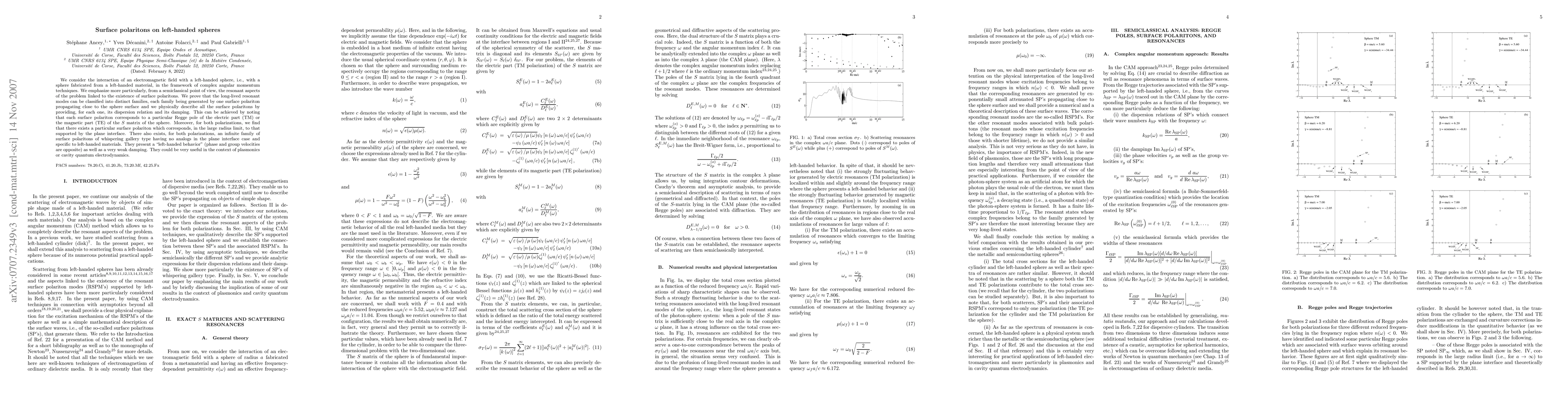This paper investigates the interaction of electromagnetic fields with left-handed spheres, identifying distinct families of long-lived resonant modes known as surface polaritons. It reveals unique polaritons specific to left-handed materials, characterized by weak damping and "left-handed behavior," potentially useful in plasmonics and cavity quantum electrodynamics.