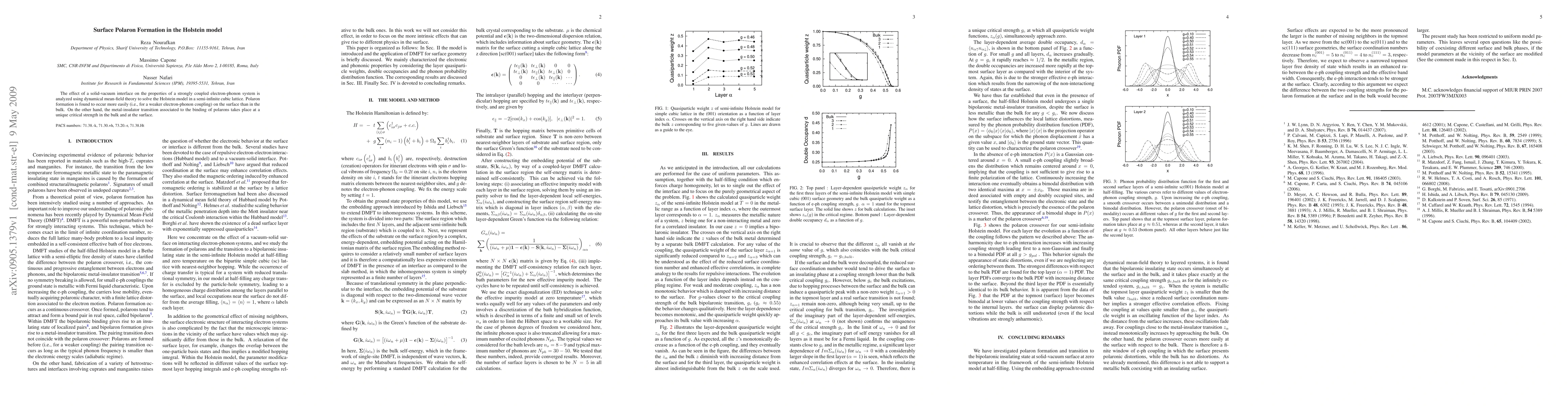 The effect of a solid-vacuum interface on the properties of a strongly coupled electron-phonon system is analyzed using dynamical mean-field theory to solve the Holstein model in a semi-infinite cubic lattice. Polaron formation is found to occur more easily (i.e., for a weaker electron-phonon coupling) on the surface than in the bulk. On the other hand, the metal-insulator transition associated to the binding of polarons takes place at a unique critical strength in the bulk and at the surface.
