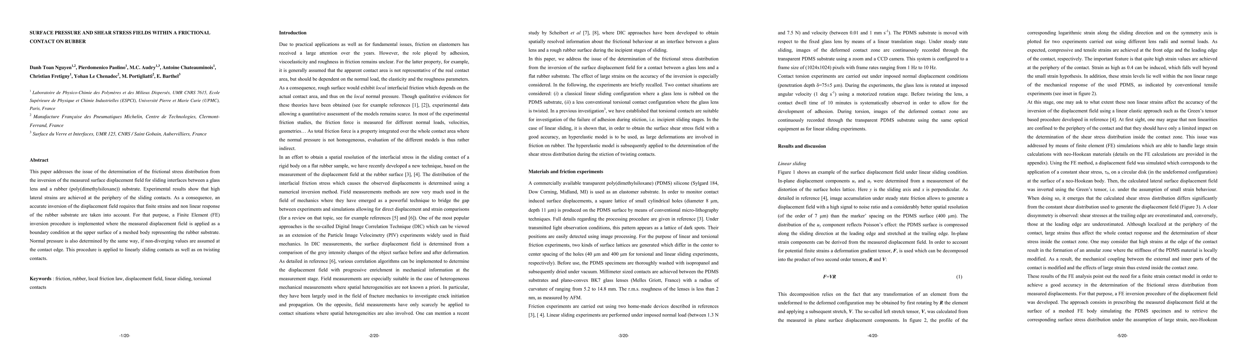 Researchers developed a method to analyze frictional stress distributions in rubber-substrate contacts using finite element analysis, finding high lateral strains at the contact edge.