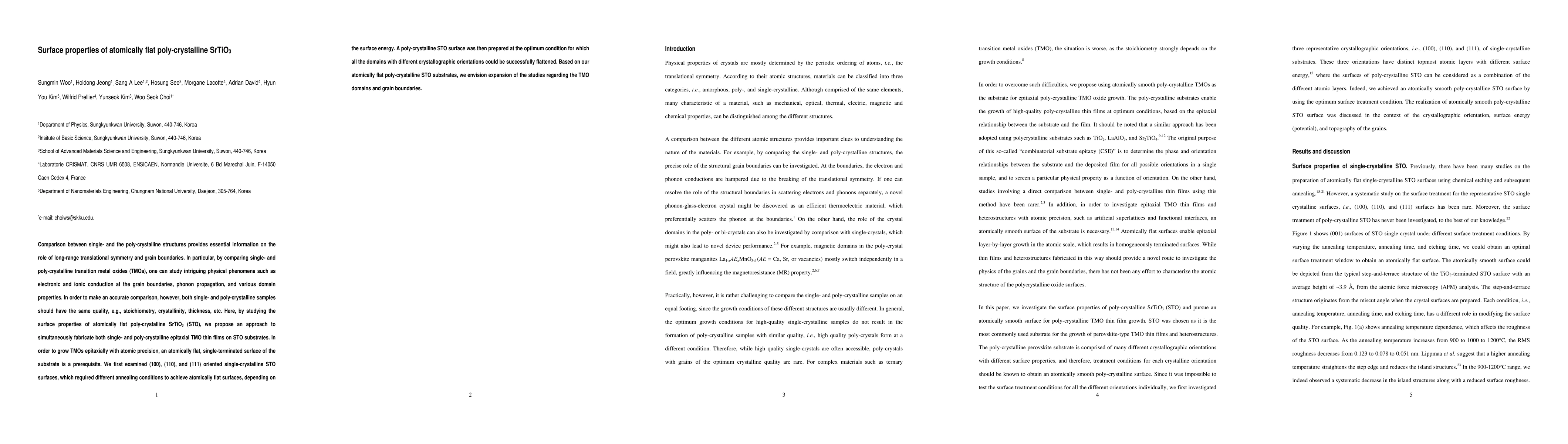 This research investigates the surface properties of atomically flat poly-crystalline SrTiO3 (STO) to fabricate single- and poly-crystalline epitaxial thin films. It proposes a method to achieve atomically flat surfaces for both single- and poly-crystalline STO, highlighting the significance of grain boundaries and domain properties in transition metal oxides.