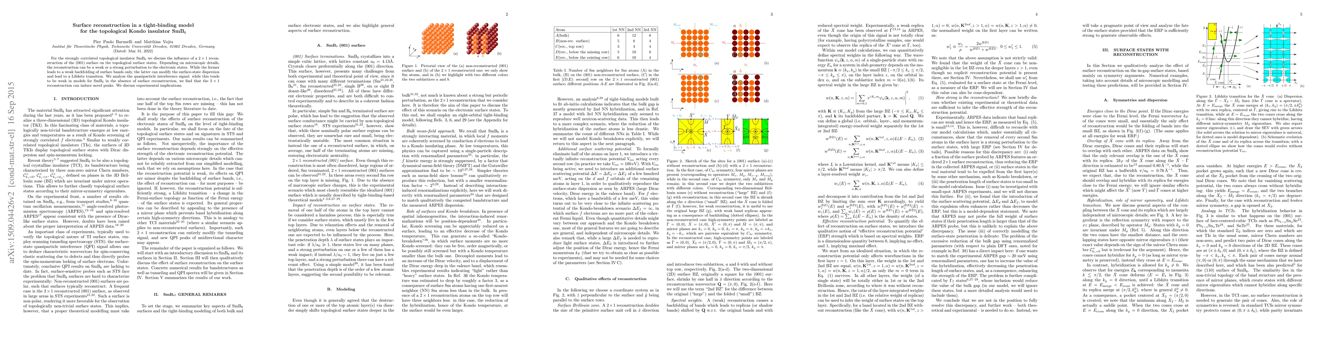 For the strongly correlated topological insulator SmB6 we discuss the influence of a 2x1 reconstruction of the (001) surface on the topological surface states. Depending on microscopic details, the reconstruction can be a weak or a strong perturbation to the electronic states. While the former leads to a weak backfolding of surface bands only, the latter can modify the surface-state dispersion and lead to a Lifshitz transition. We analyze the quasiparticle interference signal: while this tends to be weak in models for SmB6 in the absence of surface reconstruction, we find that the 2x1 reconstruction can induce novel peaks. We discuss experimental implications.